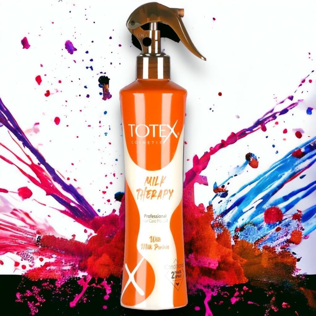 About this item Totex Milk Therapy - Totex Two Phase Hair Condtioner Milk Therapy Professional Hair Care Product For Women & Men All Hair, Deep Conditioning: The 2-phase formula combines the benefits of both oil and milk-based ingredients, providing deep nourishment and conditioning to your hair. This helps to repair and restore damaged hair, leaving it soft, smooth, and manageable. Professional Hair Care - Totex Cosmetics have developed Our Milk Therapy Conditioner for Women and Men with Genuine, Natural Milk Proteins That Strengthen the Hair inside and Outside to improve Colour, Shine and Firmness. Hair Moisterizer - Milk Therapy Moisturises Dry, Brittle and Damaged Hair - Use our Milk Protein Based Hair Care Detangling Spray Regularly to Reduce Dryness, Damage, Split ends and Dull Hair Colour to Make it Feel Soft and Youthful Looking Radiant. Amazing Formula - Spray Conditioner New Hair Care Formula Can Help You Get Stronger & Healthier Hair Regardless of Your Style, Colour or Hair Type so it Always Looks and Feels Fantastic. Intense Hydration: The milk component in the conditioner helps to hydrate and moisturize your hair, preventing dryness and frizz. It replenishes the moisture lost due to environmental factors or heat styling, leaving your hair hydrated and healthy-looking. Improved Hair Texture: Regular use of a 2-phase milk therapy hair conditioner can improve the texture of your hair over time. It helps to strengthen the hair strands and reduces the occurrence of split ends, promoting healthier and smoother hair. How to Use - Easy Wet or Dry Application Process - An Easy to Use Spray Bottle System. Our Hair Conditioner Can be Applied to Damp Hair Before blow-Drying or Drying to Nourish and Moisturise the Hair Before You Start The Day › See more product details,Totex Milk Therapy - Totex Two Phase Hair Condtioner Milk Therapy Professional Hair Care Product For Women & Men All Hair, Deep Conditioning: The 2-phase formula combines the benefits of both oil and milk-based ingredients, providing deep nourishment and conditioning to your hair. This helps to repair and restore damaged hair, leaving it soft, smooth, and manageable,Professional Hair Care - Totex Cosmetics have developed Our Milk Therapy Conditioner for Women and Men with Genuine, Natural Milk Proteins That Strengthen the Hair inside and Outside to improve Colour, Shine and Firmness,Hair Moisterizer - Milk Therapy Moisturises Dry, Brittle and Damaged Hair - Use our Milk Protein Based Hair Care Detangling Spray Regularly to Reduce Dryness, Damage, Split ends and Dull Hair Colour to Make it Feel Soft and Youthful Looking Radiant,Amazing Formula - Spray Conditioner New Hair Care Formula Can Help You Get Stronger & Healthier Hair Regardless of Your Style, Colour or Hair Type so it Always Looks and Feels Fantastic. Intense Hydration: The milk component in the conditioner helps to hydrate and moisturize your hair, preventing dryness and frizz. It replenishes the moisture lost due to environmental factors or heat styling, leaving your hair hydrated and healthy-looking,Improved Hair Texture: Regular use of a 2-phase milk therapy hair conditioner can improve the texture of your hair over time. It helps to strengthen the hair strands and reduces the occurrence of split ends, promoting healthier and smoother hair,How to Use - Easy Wet or Dry Application Process - An Easy to Use Spray Bottle System. Our Hair Conditioner Can be Applied to Damp Hair Before blow-Drying or Drying to Nourish and Moisturise the Hair Before You Start The Day