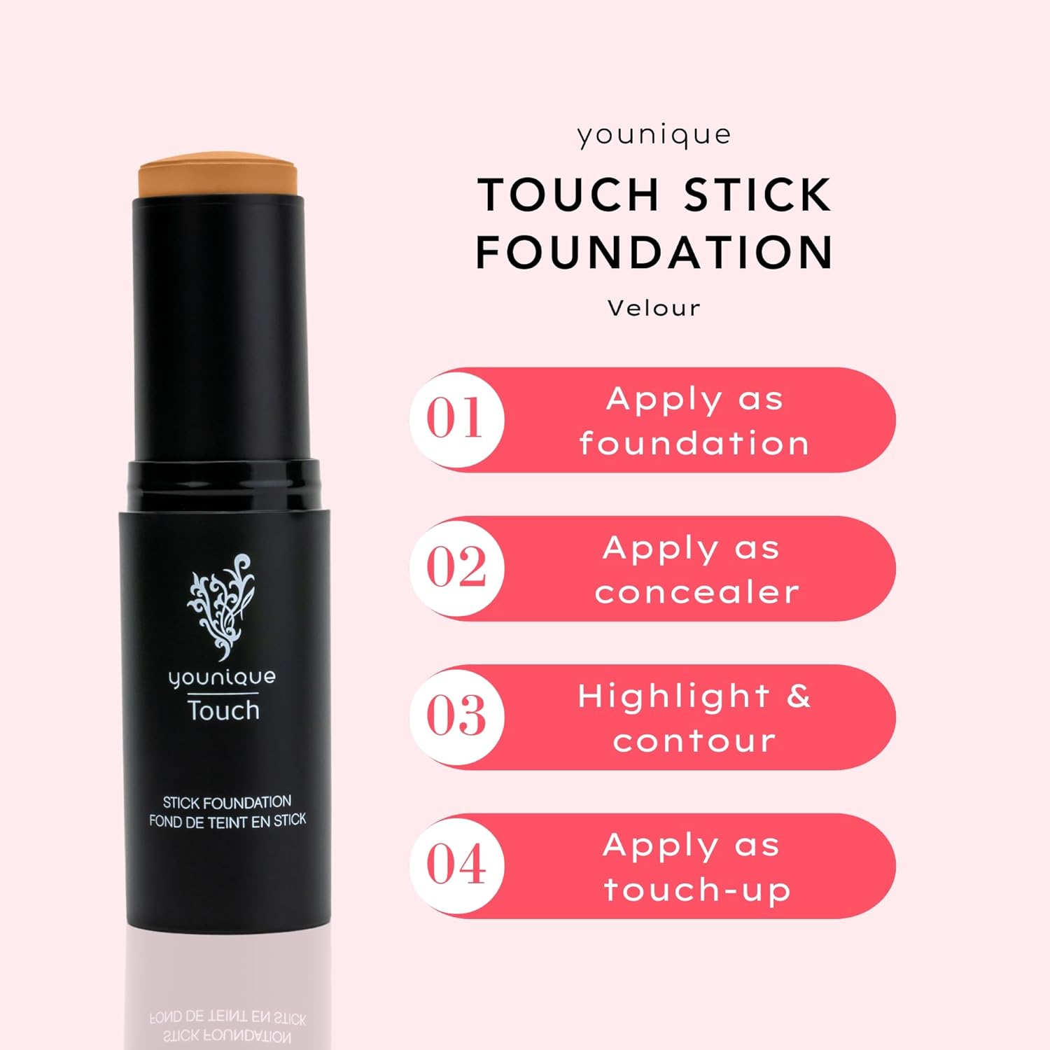 Touch Stick Foundation | Velour | Medium To Full Coverage Makeup & Concealer | Velvet Finish | Infused With Squalane & Safflower Oil | Compact, Travel-Ready Foundation