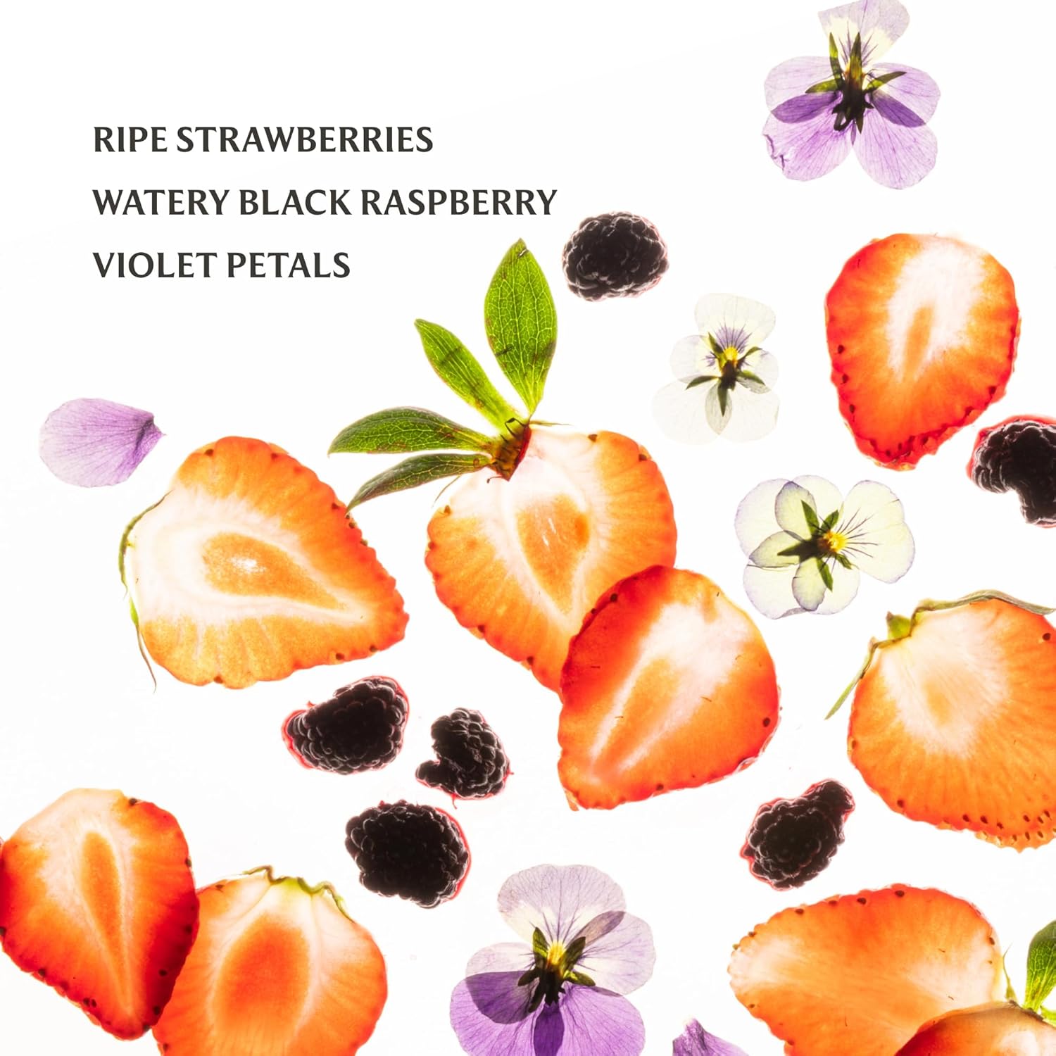LUSH & JOYFUL SCENT: Ripe strawberries and juicy black raspberry blend with violet petals, capturing the brightness of a berry-kissed meadow