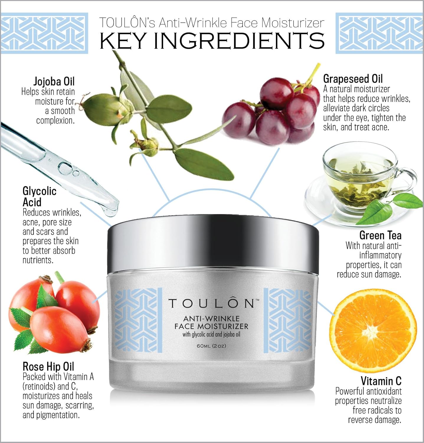 Toulon Glycolic Acid Cream 10% Face Moisturizer. Best Alpha Hydroxy Acid Products; Exfoliating, Anti-Aging Wrinkle Cream With Aha For Acne Prone Skin; Natural Exfoliator For Day And Night