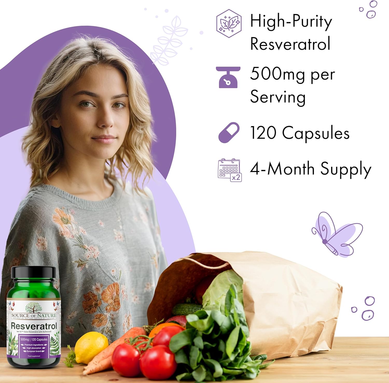 Trans-Resveratrol 500 Mg | 120 Vegan Capsules | High Strength | 98% Purity | Naturally Fermented | With Piperine | Lab Tested | Premium Quality