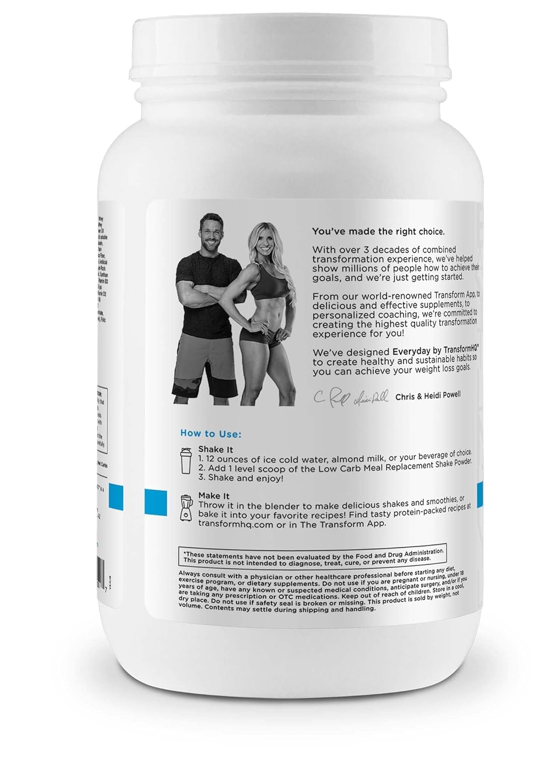 DESCRIPTION : TransformHQ Meal Replacement Shake Powder 28 Servings (Vanilla) - Gluten Free, Non-GMO