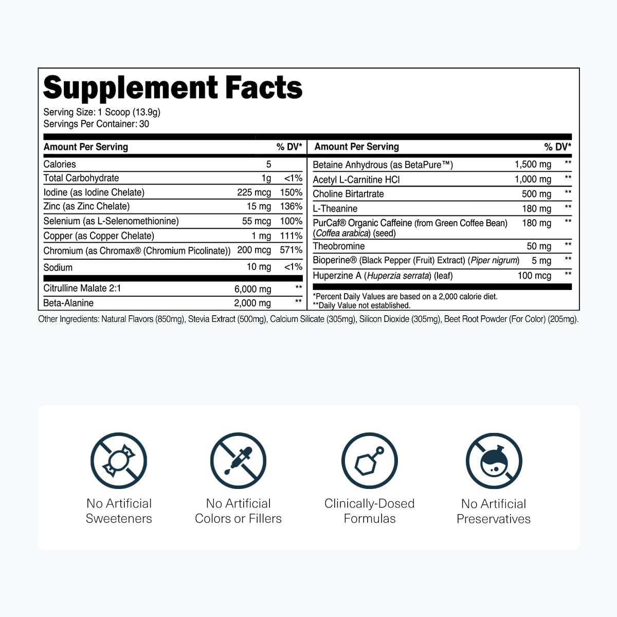 Scientific Excellence in Every Scoop: Transparent Labs Bulk Black stands out with its advanced, science-backed formula. Key components like Citrulline Malate, Beta-Alanine, Betaine Anhydrous, Taurine, L-Tyrosine, AlphaSize Alpha-GPC, and more form a powerful synergy. This blend is designed to deliver a comprehensive boost to your workout performance, ensuring you have the necessary tools to push your limits and reach your fitness aspirations