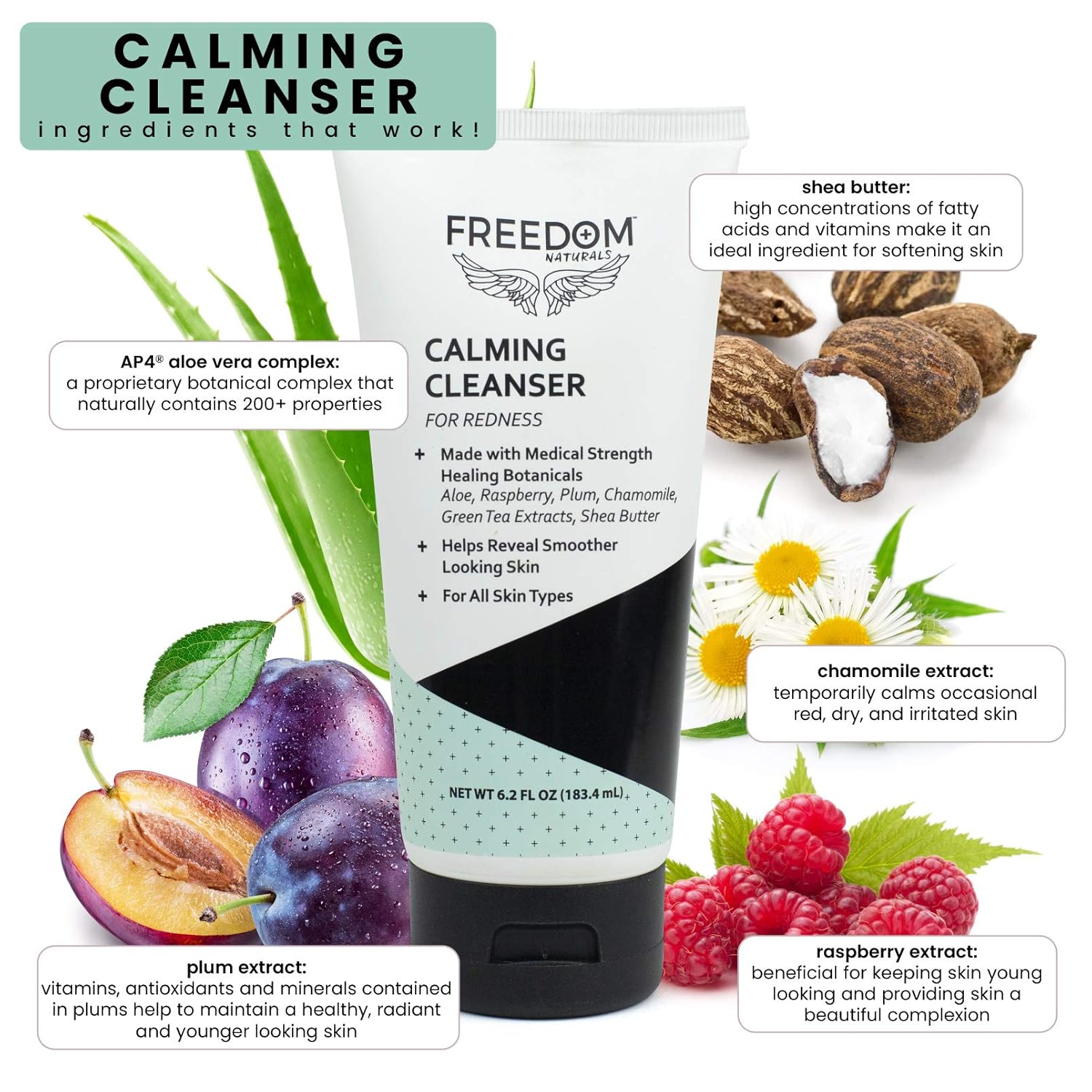 About this item Calms redness with natural healing botanicals. Gently cleans and soothes without irritation. Improves the look of uneven skin tone and texture. Non-Greasy, Paraben Free. See more product details,Calms redness with natural healing botanicals,Gently cleans and soothes without irritation,Improves the look of uneven skin tone and texture,Non-Greasy, Paraben Free
