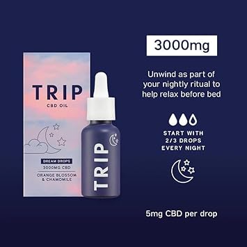 Trip Cbd Oil 3000Mg (High Strength), Dream Drops, Vegan, 100% Natural, Flavoured Cbd Oil Blended With Mct Coconut Oil - Feel Less Stress, Improve Sleep, Anxiety Relief - 30Ml