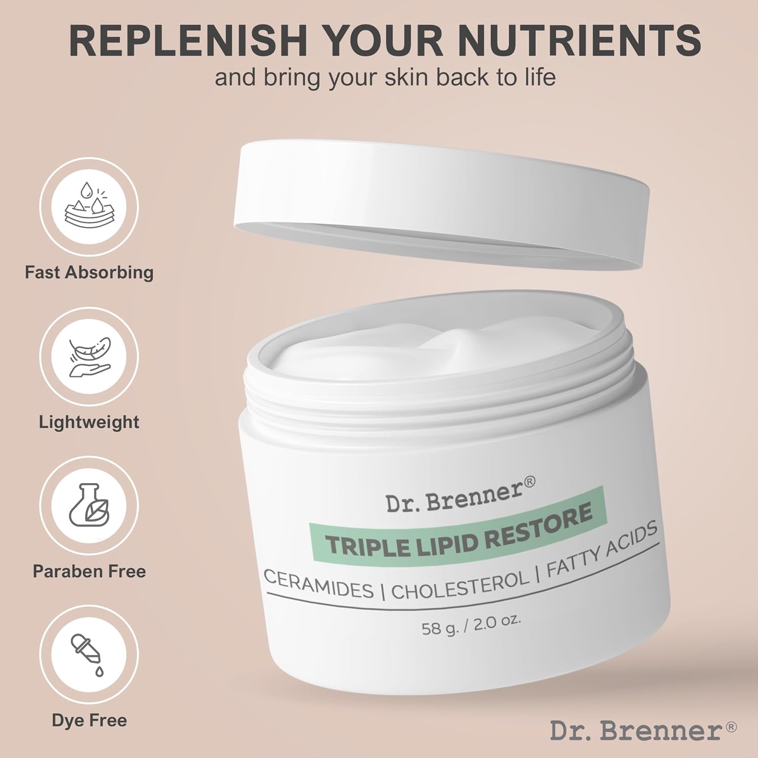 Our triple lipid restore face cream moisturizer is paraben, dye, and fragrance free. Ideal for all skin types