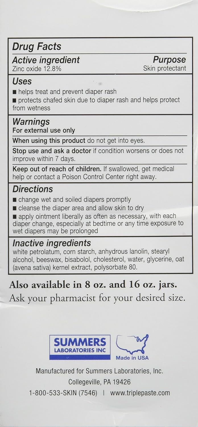 Triple Paste Diaper Rash Cream, Hypoallergenic Medicated Ointment for Babies, 2 oz (Pack of 3)