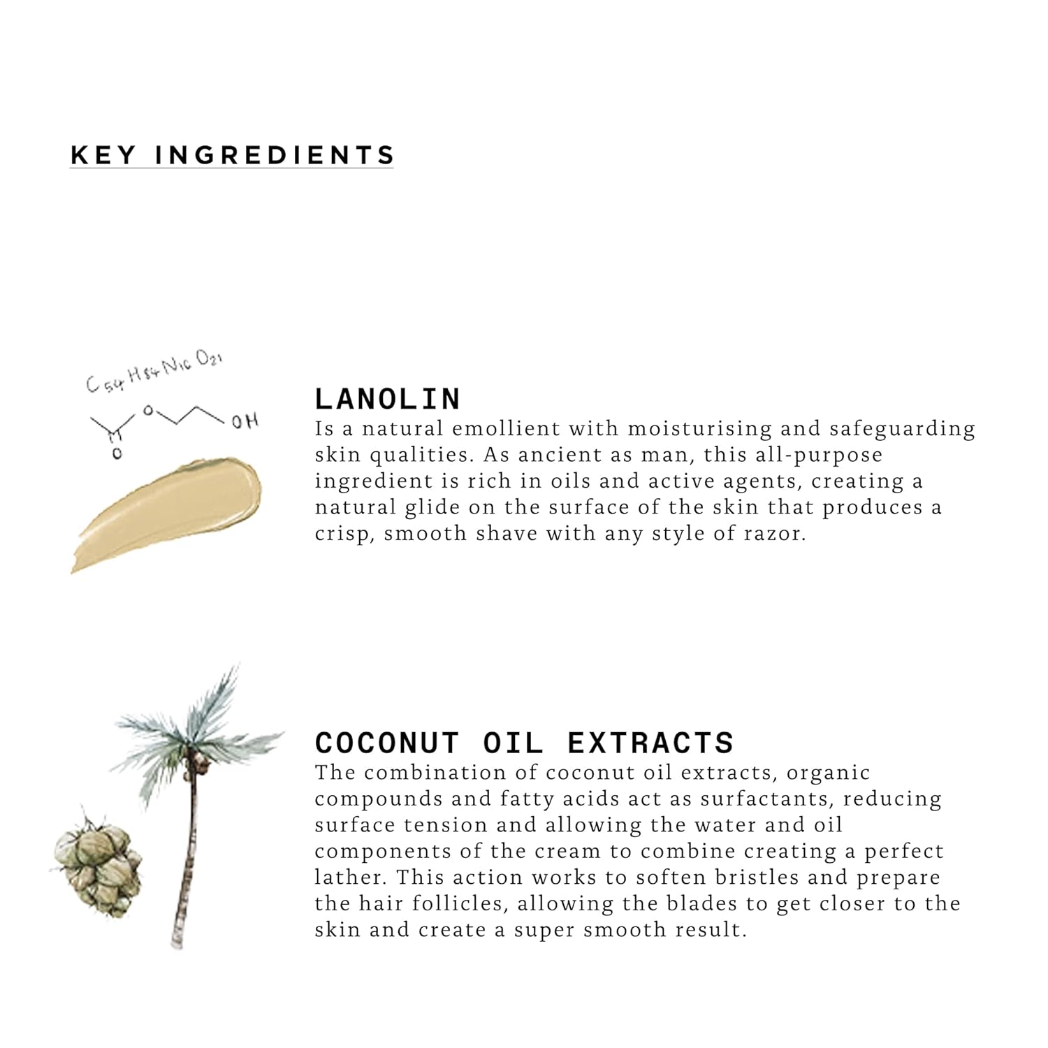 CLOSE, COMFORTABLE & WET SHAVE | This luxury shaving cream for men is ideal for sensitive skin and rich in natural oils providing a natural glide, leaving skin feeling refreshed and hydrated SOFTENS BRISTLES & PREPARES HAIR FOLLICLES | the water and oil components in our shaving cream for men create the perfect lather, delivering a super-smooth freshly shaven look, putting an end to razor burns & bumps. HIGH-PERFORMING NATURAL, SUSTAINABLE INGREDIENTS | Alcohol-free blend of coconut oil extracts, organic compounds & fatty acids reduces surface tension for 90+ comfortable shaves, truly the most refreshing shaving cream for men. AUTHENTIC FRAGRANCE | This natural shave cream, with aromas of old school medicinal notes, bright, fresh citrus tones and a hint of traditional men’s Turkish barbershop is befitting of a gentleman’s morning ritual HIGHLY-ACCLAIMED |Shaving cream by Triumph & Disaster combines the best of science and best of nature, to deliver a true luxury shaving cream for men. See more product details,CLOSE, COMFORTABLE & WET SHAVE | This luxury shaving cream for men is ideal for sensitive skin and rich in natural oils providing a natural glide, leaving skin feeling refreshed and hydrated,SOFTENS BRISTLES & PREPARES HAIR FOLLICLES | the water and oil components in our shaving cream for men create the perfect lather, delivering a super-smooth freshly shaven look, putting an end to razor burns & bumps,HIGH-PERFORMING NATURAL, SUSTAINABLE INGREDIENTS | Alcohol-free blend of coconut oil extracts, organic compounds & fatty acids reduces surface tension for 90+ comfortable shaves, truly the most refreshing shaving cream for men,AUTHENTIC FRAGRANCE | This natural shave cream, with aromas of old school medicinal notes, bright, fresh citrus tones and a hint of traditional men’s Turkish barbershop is befitting of a gentleman’s morning ritual,HIGHLY-ACCLAIMED |Shaving cream by Triumph & Disaster combines the best of science and best of nature, to deliver a true luxury shaving cream for men