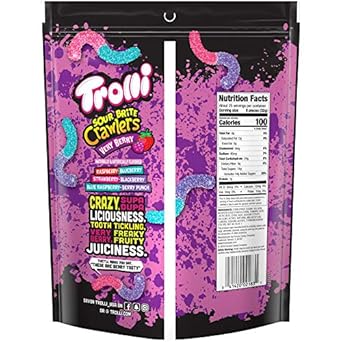 We Heard You, You'Re Bonkers For Berry! Trolli Very Berry Sour Brite Crawlers Minis Make It Look Like YouâRe Eating A Real Worm. DonâT Worry; ItâS So Amazingly Tasty You WonâT Mind. Sour Brite Crawlers Provide Mouth Meddling, Tangy, Weird Wormy Goodness And Lip Smacking, Sweetly Sour, Mind Warping Tastiness. Home Of America'S Best Selling Gummy Worm, Trolli Candy Has Weirdly Awesome Flavors, Weirdly Awesome Shapes, And Weirdly Awesome Fun. 100% Of The Daily Strange Required For Teens. Sour And Sweet, Delicious And Demented