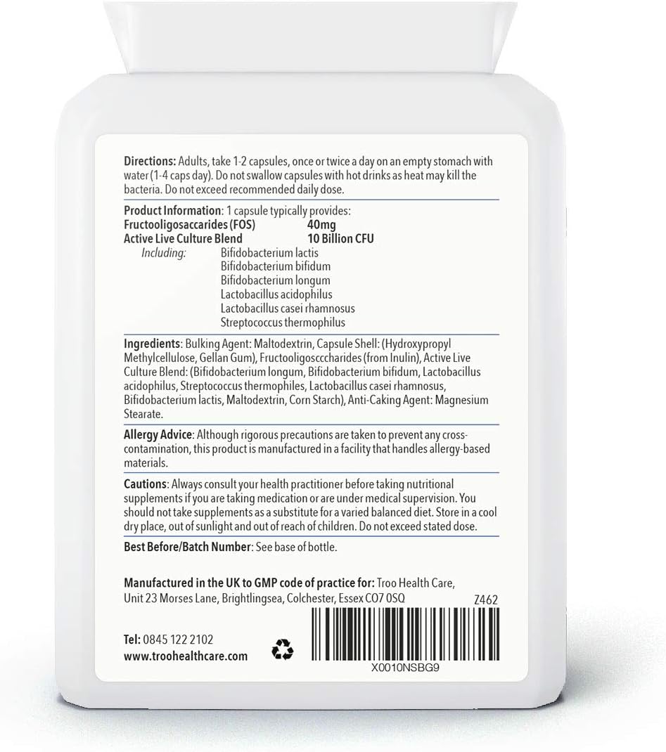 DESCRIPTION : Troo Acidophilus Complete Supplement - High-strength Multi-strain Active Live Bacteria Complex - 10 Billion CFU 60 Capsules - Suitable for Vegans