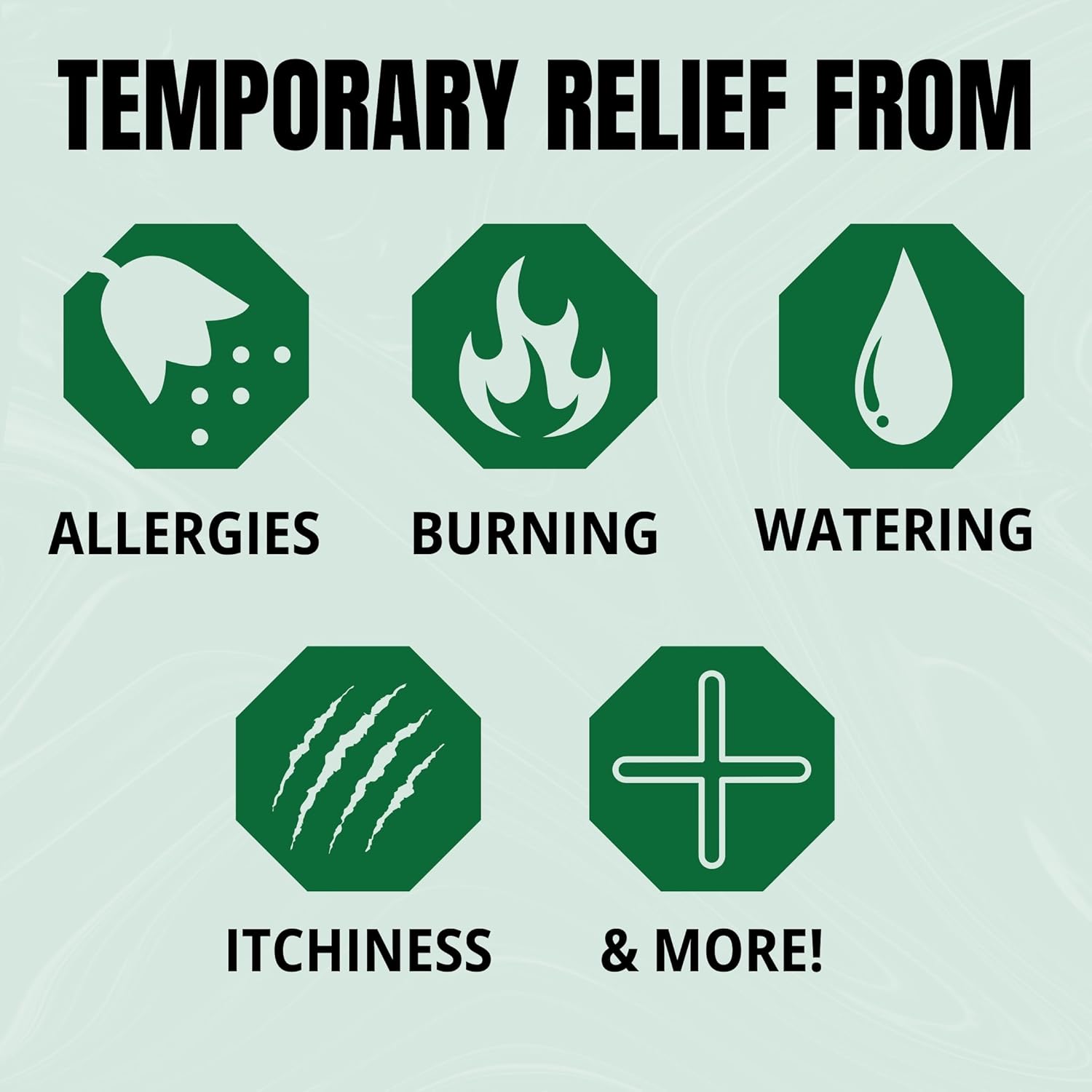 Allergy Eyes Relief provides temporary relief for symptoms such as excessive watering and itchy eyes, dry, red eyes, burning as well as acute and chronic allergies