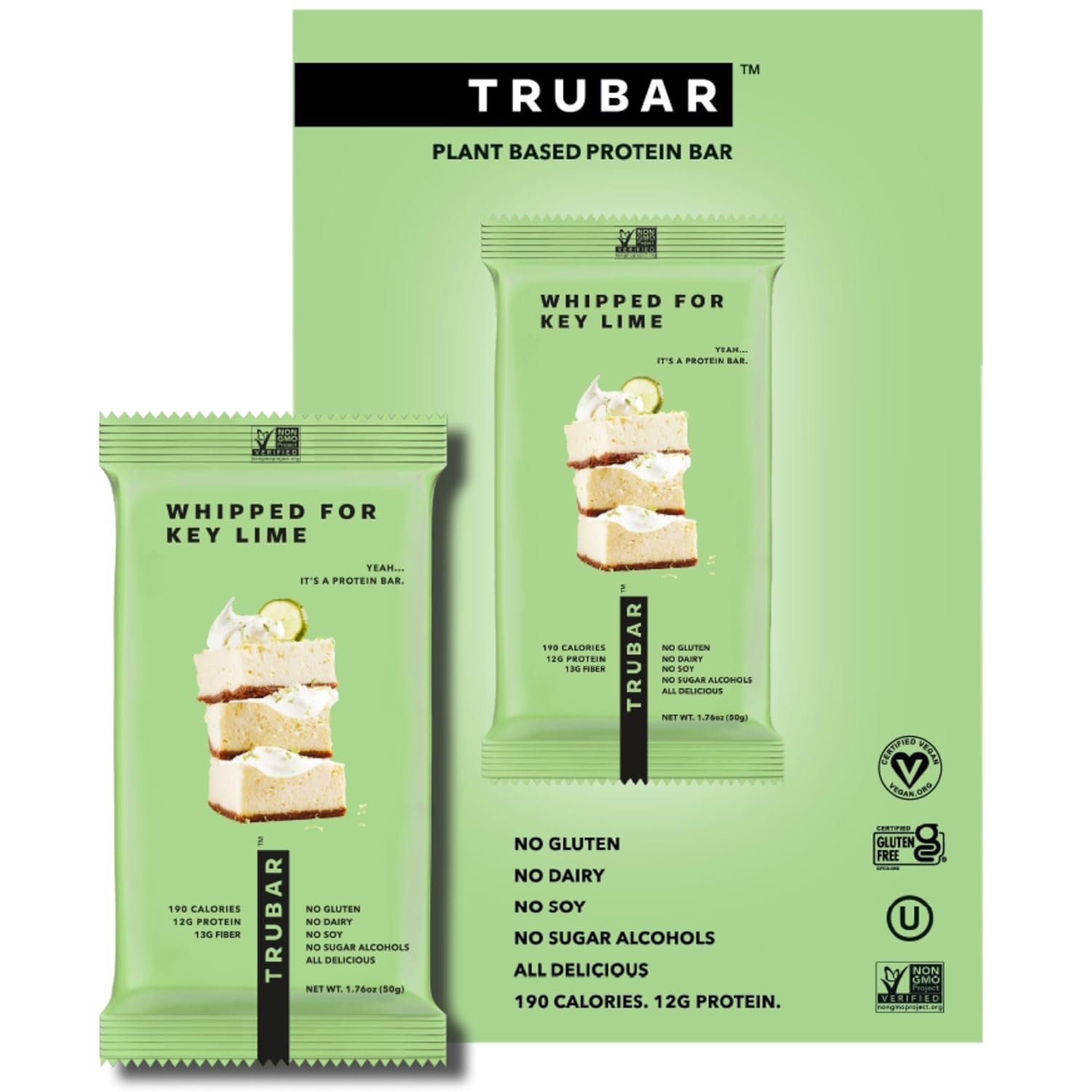 Trubar Vegan Protein Bar, Whipped For Key Lime, Gluten Free, Plant Based Protein, Dairy Free, Non Gmo, Soy Free, No Sugar Alcohols, 12G Protein, 12G Fiber, 23G Carb, On The Go Snack Bars, 12 Ct