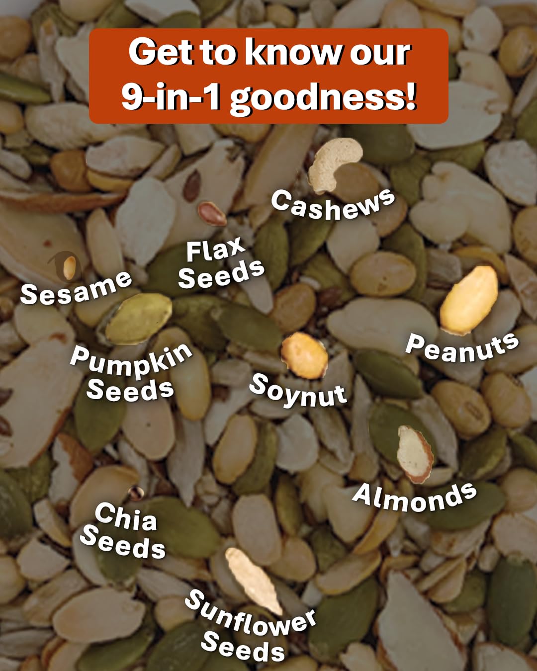 True Elements 9 In 1 Snack Mix 8.82 Oz - Mix Of Pumpkin, Watermelon, Flax, Chia, Sunflower, Peanuts, Soynuts, Almonds & Cashew Nuts