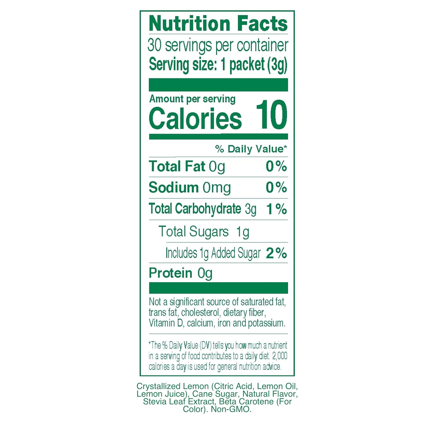 Low Calorie Drink Mix: Each Powdered Drink Mix Packet Contains 10 Calories, 1 Gram Of Sugar And 3 Grams Of Total Carbohydrates