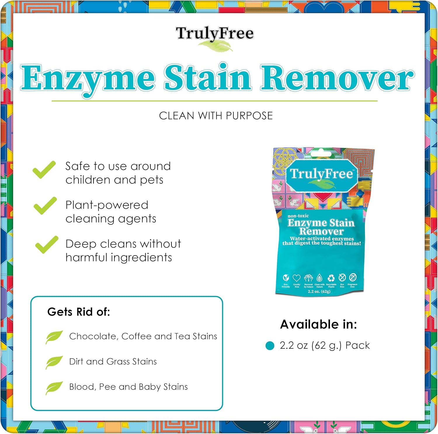 Truly Free Natural Stain Remover, Water-Activated Enzymes, Breaks Down Food, Blood, Grass Stains, Pet Stains And Odor Remover (50 Scoops)