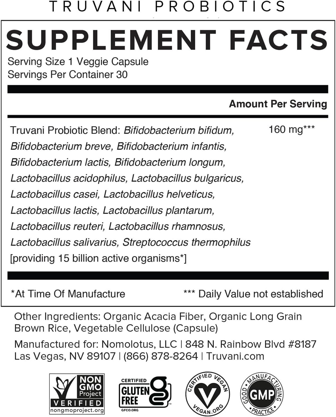 Truvani Probiotic Supplement | 30 Servings | 15 Billion Cfu | 15 Diverse Strains For Digestive, Immune & Brain Health Support | Shelf-Stable Vegan Capsules | Non-Gmo, No Fillers