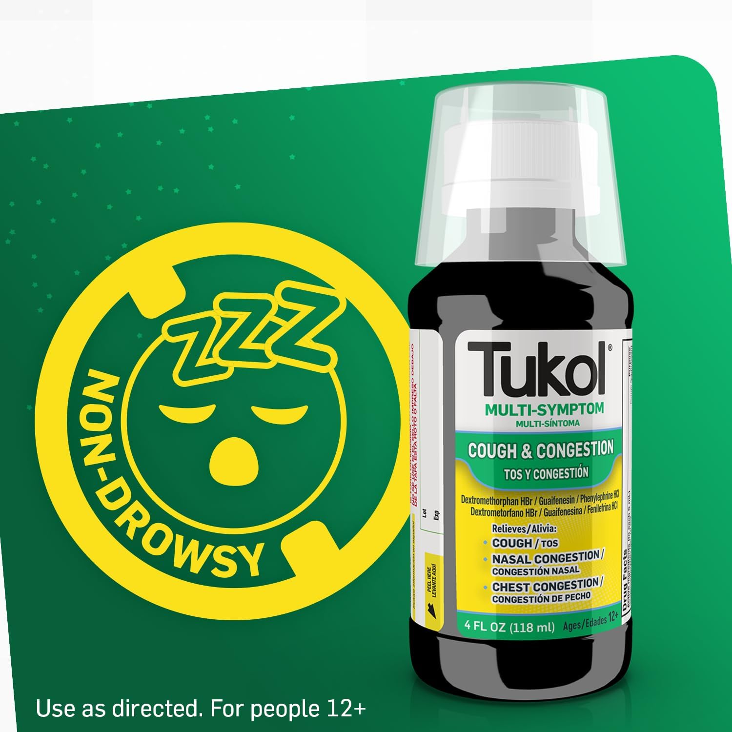Buy TUKOL Cough Medicine for Adults - Multi-Symptom Cough Syrup with Dextromethorphan, DXM Cough Suppressant & Expectorant, Ages 12+, Powerful Relief for Cough, Chest, and Nasal Congestion- 4 FL OZ on Amazon.com FREE SHIPPING on qualified orders