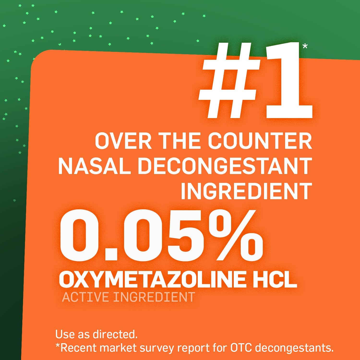 About this item [ POWERFUL NASAL SPRAY DECONGESTANT ]: Fast-acting oxymetazoline nasal spray for adults; provides 12-hour nasal congestion relief and stuffy nose relief due to common cold, hay fever and upper respiratory allergies [ FAST-ACTING NASAL CONGESTION RELIEF ]: Oxymetazoline nasal spray decongestant starts working in 10 minutes for quick stuffy nose relief for adults [ MOISTURIZING NASAL SPRAY FOR COMFORT ]: Oxymetazoline formula helps soothe nasal passages while delivering fast relief [ ACTIVE INGREDIENTS ]: Formulated with oxymetazoline hydrochloride for powerful decongestion, providing fast relief for sinus congestion and post nasal drip. Ideal for adults needing nasal care [ EASY DOSAGE ]: Adults and children over 12, use 2-3 sprays in each nostril every 10-12 hours. Do not exceed 2 doses in 24 hours. This nasal spray provides relief for sinus and cold symptoms See more product details,[ POWERFUL NASAL SPRAY DECONGESTANT ]: Fast-acting oxymetazoline nasal spray for adults; provides 12-hour nasal congestion relief and stuffy nose relief due to common cold, hay fever and upper respiratory allergies,[ FAST-ACTING NASAL CONGESTION RELIEF ]: Oxymetazoline nasal spray decongestant starts working in 10 minutes for quick stuffy nose relief for adults,[ MOISTURIZING NASAL SPRAY FOR COMFORT ]: Oxymetazoline formula helps soothe nasal passages while delivering fast relief,[ ACTIVE INGREDIENTS ]: Formulated with oxymetazoline hydrochloride for powerful decongestion, providing fast relief for sinus congestion and post nasal drip. Ideal for adults needing nasal care,[ EASY DOSAGE ]: Adults and children over 12, use 2-3 sprays in each nostril every 10-12 hours. Do not exceed 2 doses in 24 hours. This nasal spray provides relief for sinus and cold symptoms