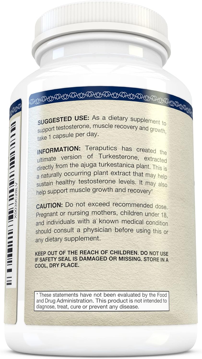 Natural Testosterone Supplement For Men - Looking for natureās best dietary supplement for men? Sourced from 100% pure Ajuga Turkestanica extract, Teraputics Turkesterone 500mg is a simple yet mighty organically occurring hormone. This āherbal equivalent of testosteroneā is a healthy surefire alternative to scary performance-enhancing pills or powders you hear about in gym locker rooms. A powerhouse of mens hormone support that doubles as a lean muscle builder with no harsh side effects