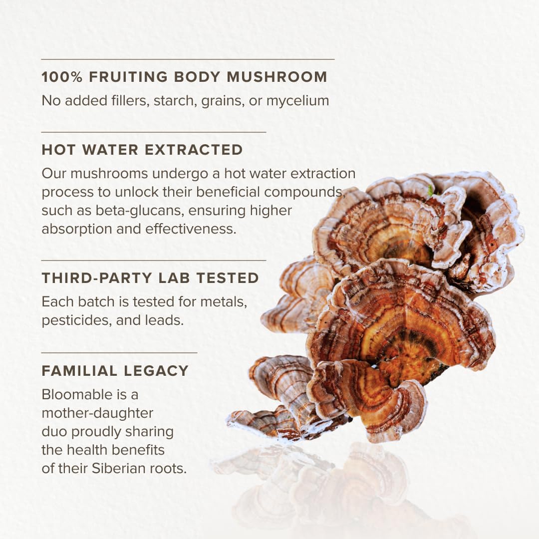 Turkey Tail Mushroom Capsules: Made using Turkey Tail mushroom that is grown on wood, Turkey Tail is a source of fungal polysaccharides with immunomodulating properties