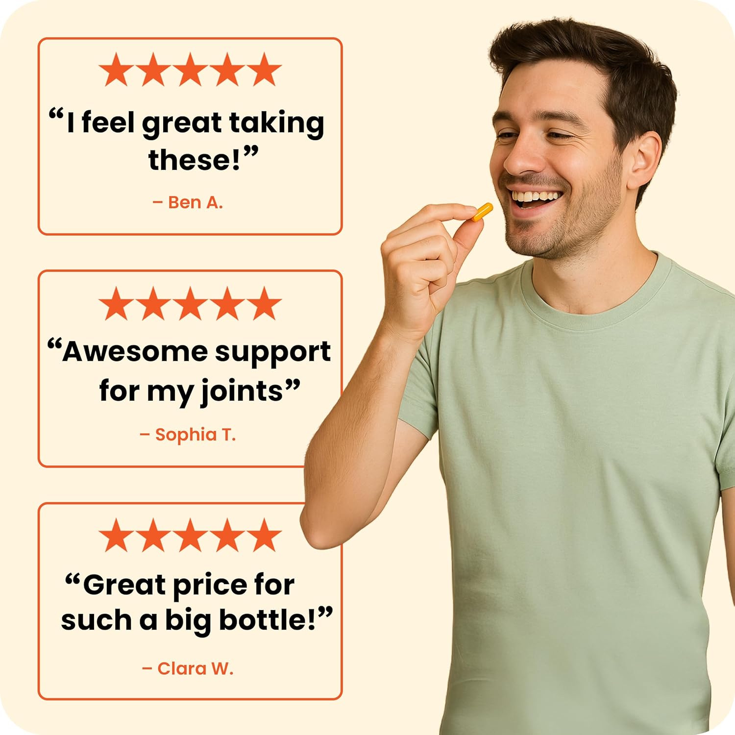 About this item 200 CAPSULES HIGH POTENCY TURMERIC CURCUMIN: Carefully formulated with organic turmeric root, 95% standardized curcuminoids, and BioPerine (black pepper extract) for maximum absorption. Each serving delivers powerful antioxidants for healthy joint support, active living and optimized wellbeing.* JOINT SUPPORT, MUSCLE & BONES: Our Turmeric Curcumin formula is researched to help support joints and muscles, all over the body. Whether you’re active, on your feet all day, or looking to maintain joint comfort, Turmeric Curcumin helps you stay supported through daily physical activity.* ENHANCED ABSORPTION WITH BIOPERINE BLACK PEPPER: Contains extensively studied, patented BioPerine to enhance curcumin absorption by up to 2000%. While others use only turmeric root, our multi-ingredient formula is designed to support your healthy and active lifestyle.* MADE IN THE USA – ORGANIC, NON-GMO & VEGAN: Manufactured in an NSF-certified, cGMP US facility, with globally sourced and organic ingredients. Non-GMO, vegan, gluten free, dairy free, soy free, and sugar free – no artificial fillers or preservatives.* THIRD PARTY TESTED & TRUSTED QUALITY: Your health matters. Our Turmeric Curcumin is third-party tested for purity and potency, ensuring you receive an expertly created supplement you can trust. Backed by a commitment to quality and rigorous industry standards.* See more product details,200 CAPSULES HIGH POTENCY TURMERIC CURCUMIN: Carefully formulated with organic turmeric root, 95% standardized curcuminoids, and BioPerine (black pepper extract) for maximum absorption. Each serving delivers powerful antioxidants for healthy joint support, active living and optimized wellbeing,JOINT SUPPORT, MUSCLE & BONES: Our Turmeric Curcumin formula is researched to help support joints and muscles, all over the body. Whether you’re active, on your feet all day, or looking to maintain joint comfort, Turmeric Curcumin helps you stay supported through daily physical activity,ENHANCED ABSORPTION WITH BIOPERINE BLACK PEPPER: Contains extensively studied, patented BioPerine to enhance curcumin absorption by up to 2000%. While others use only turmeric root, our multi-ingredient formula is designed to support your healthy and active lifestyle,MADE IN THE USA – ORGANIC, NON-GMO & VEGAN: Manufactured in an NSF-certified, cGMP US facility, with globally sourced and organic ingredients. Non-GMO, vegan, gluten free, dairy free, soy free, and sugar free – no artificial fillers or preservatives,THIRD PARTY TESTED & TRUSTED QUALITY: Your health matters. Our Turmeric Curcumin is third-party tested for purity and potency, ensuring you receive an expertly created supplement you can trust. Backed by a commitment to quality and rigorous industry standards