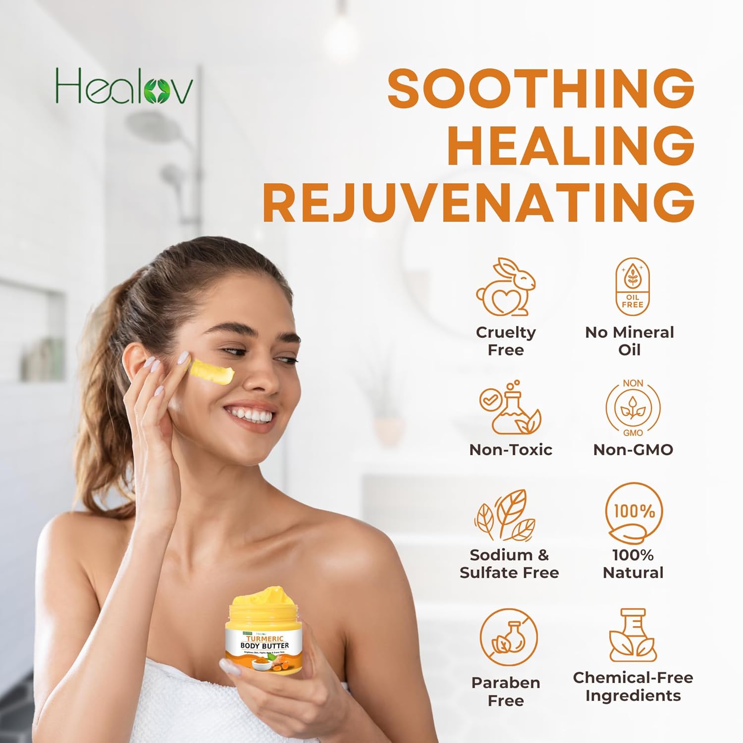 FOR FACE & BODY CLEANSING: Whether used as a hyperpigmentation cream or a skin-brightening body lotion, our raw turmeric whipped body butter offers dual-action benefits for both face and body, promoting clean and bright skin