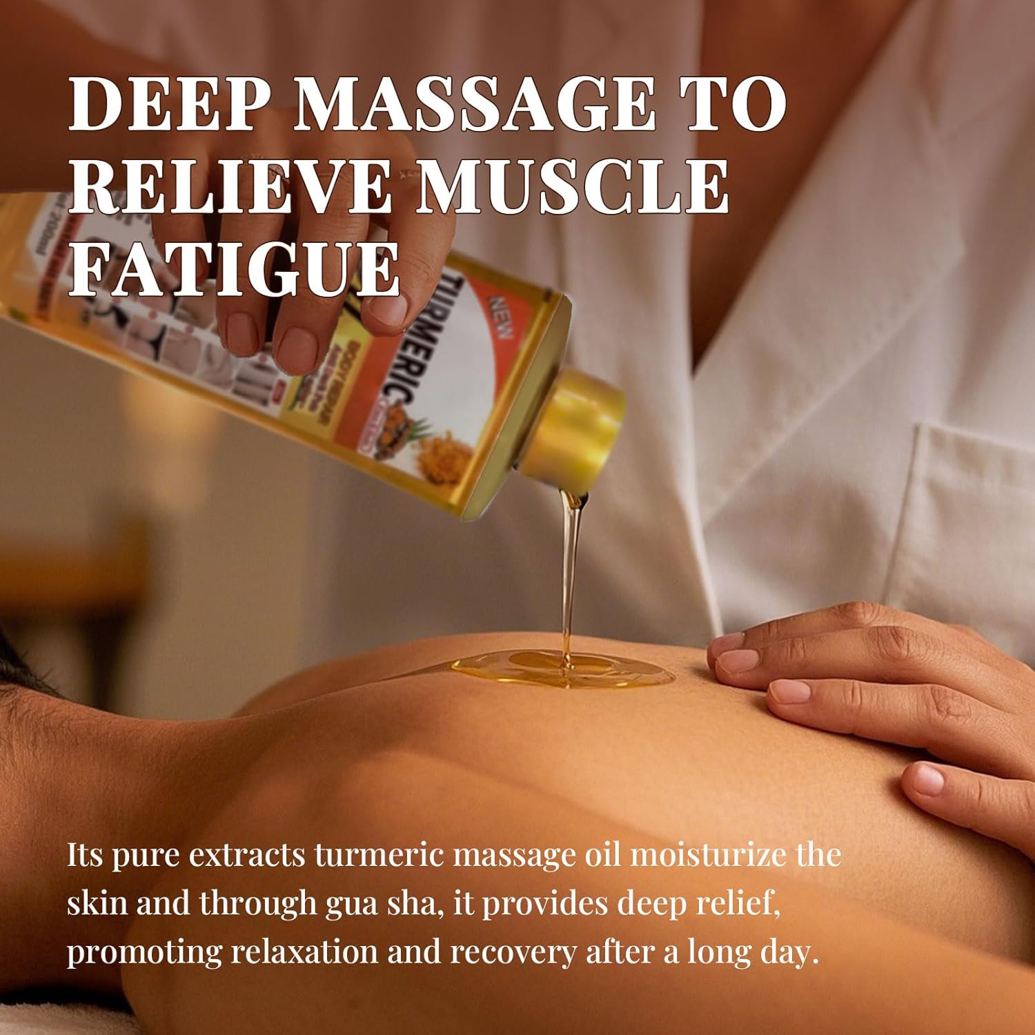 Massage Oil Muscle Relax: This helps relieve muscle tension and joint pain. Its pure extracts turmeric massage oil moisturize the skin and through gua sha, it provides deep relief, promoting relaxation and recovery after a long day