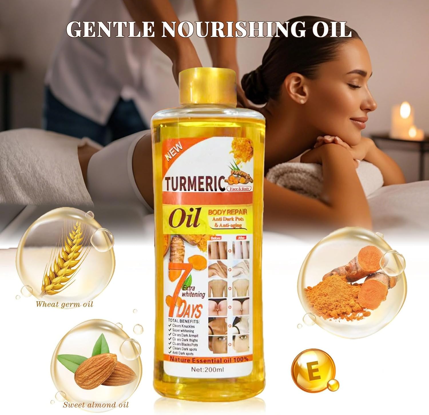 Turmeric Oil Bio Oil 200Ml, Massage Oil For Muscle Pain Relief, Nature Essential Oils, Moisturizing Turmeric Body Oil For Skin, Body, Even Skin Tone, Anti-Aging, Black Spot Remover