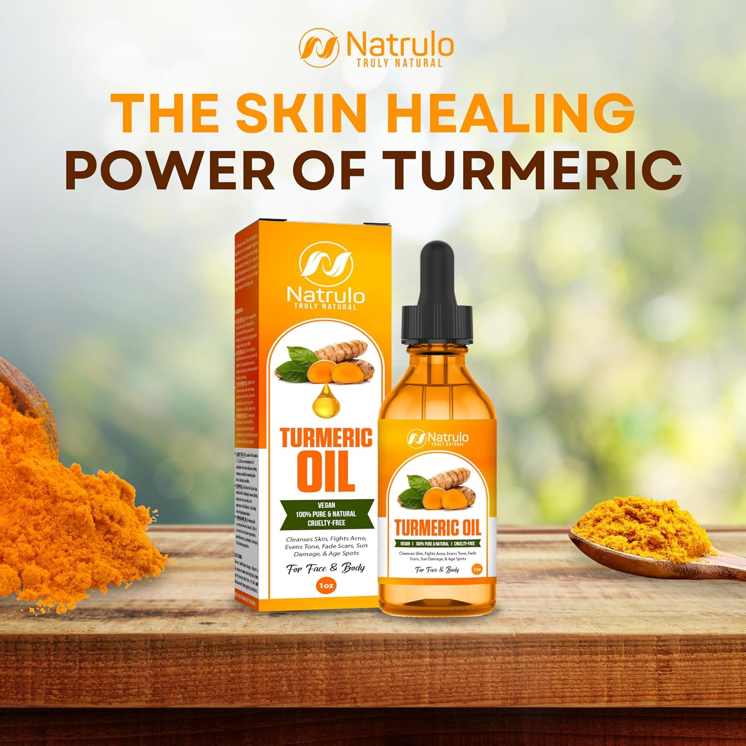 Turmeric Oil – Dark Spot Facial Serum For Face & Body – Natural Skin Brightening Serum & Hyperpigmentation Treatment – Turmeric Glow Serum Cleanses, Fights Acne, Evens Tone, Scars – For All Skin Types