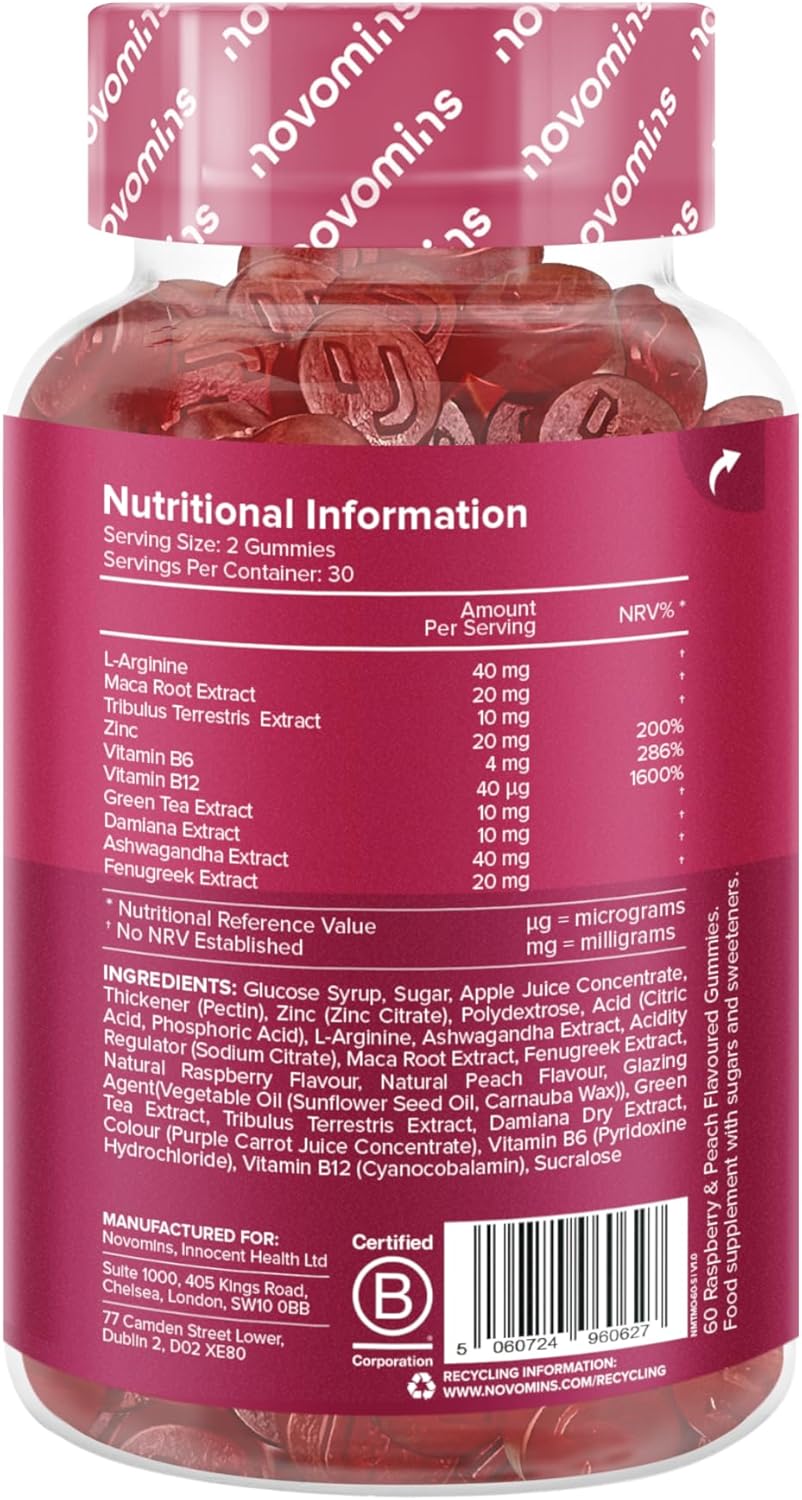 Turn Me On Gummies Women - Maca Root, Damiana, Fenugreek, Zinc, Vitamin B6 & Ashwagandha Gummies - Gluten-Free & Vegan - 60 Gummies For Women - Novomins