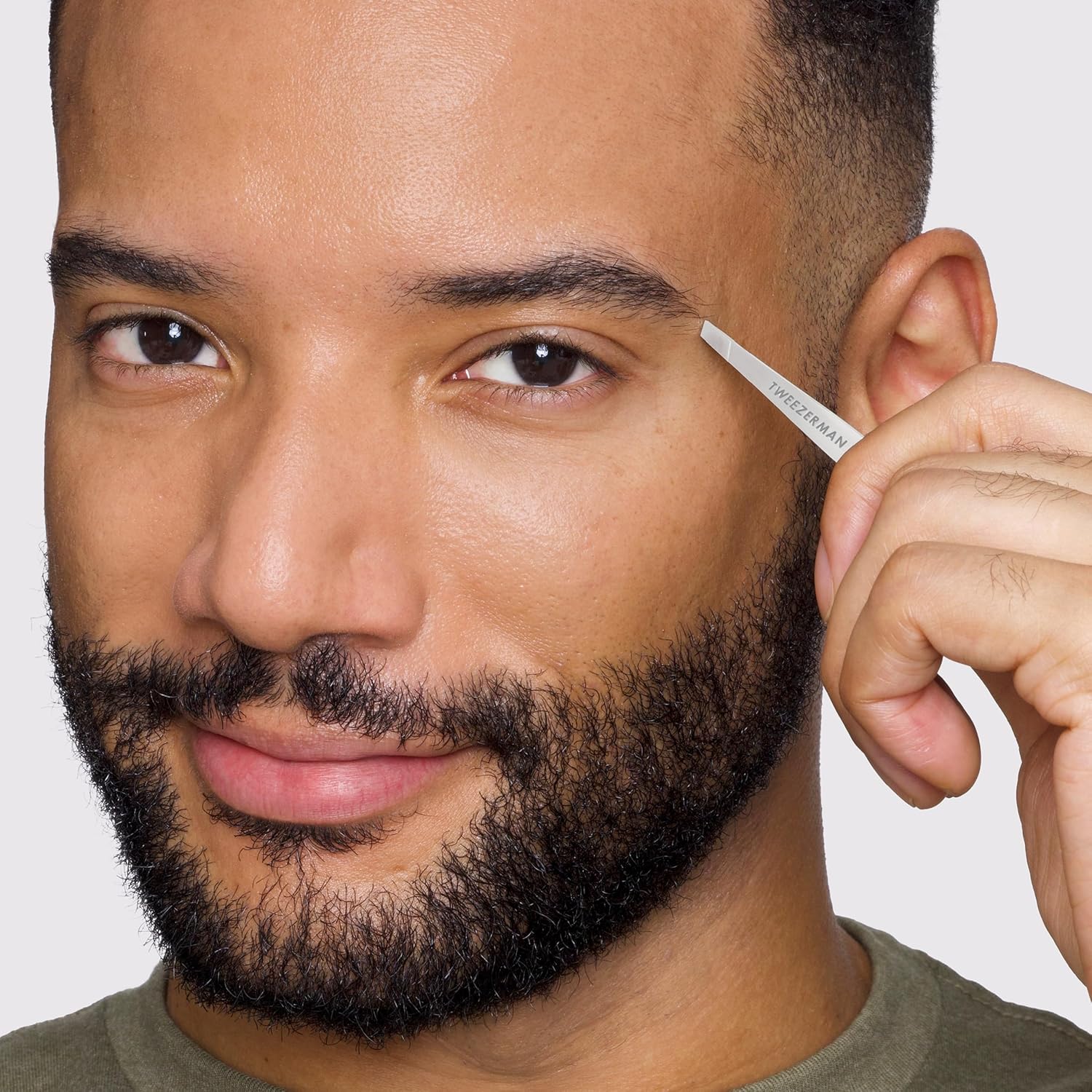 Tweezerman Mini Slant Tweezer - Tweezers For Eyebrows, Travel Tweezers For Eyebrows, Facial Hair, Ingrown Hair (Granite Sky)