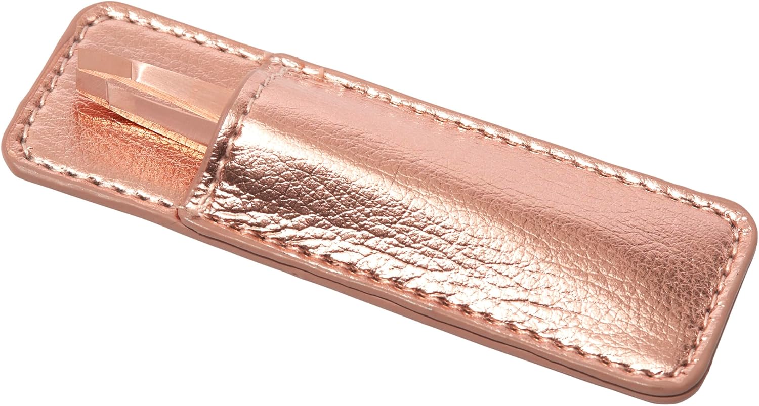 Tweezerman Rose Gold Mini Slant Tweezer With Case - Tweezers For Facial Hair Removal & Eyebrow Shaping. For Men Or Women