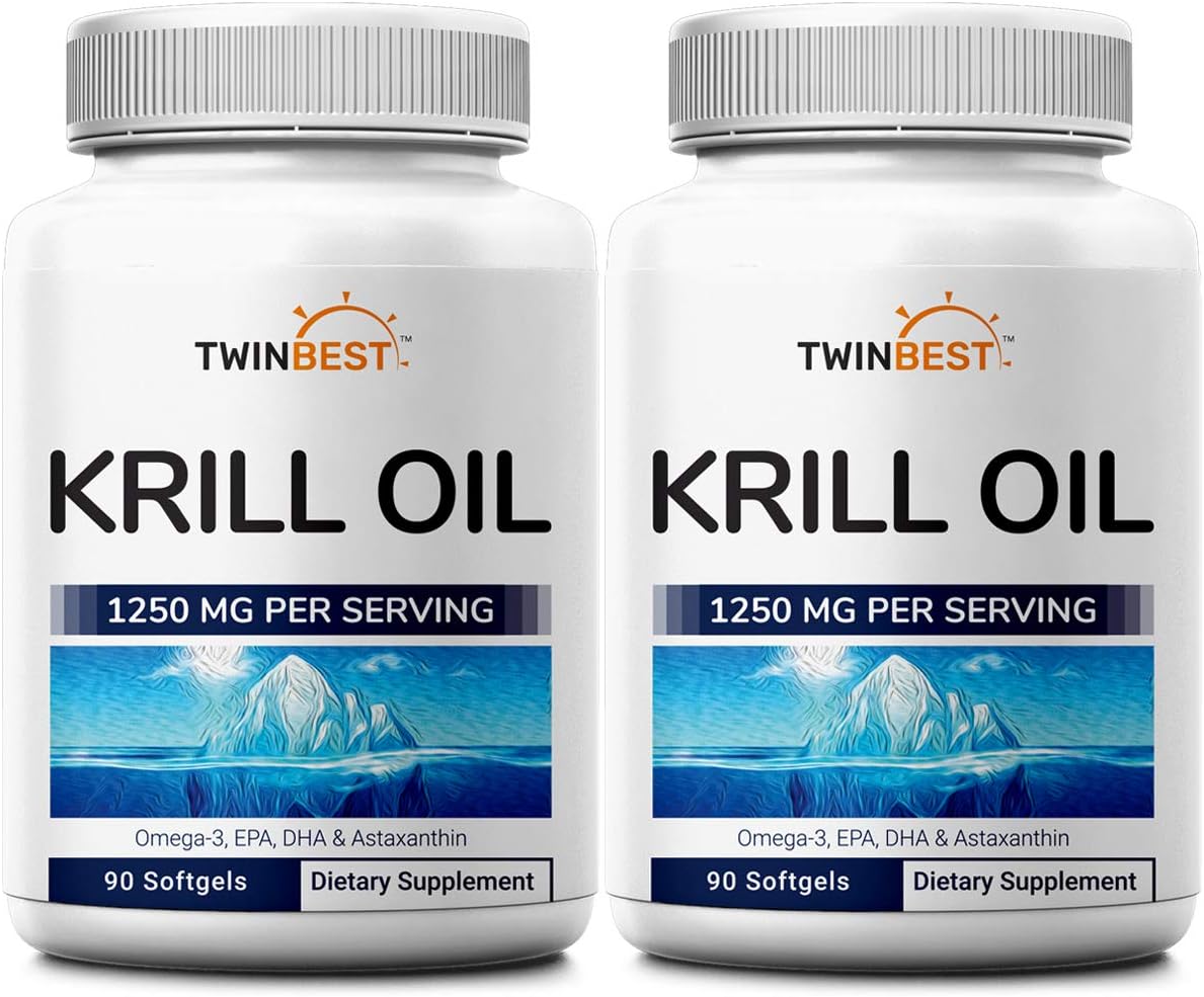 Twinbest Antarctic Krill Oil Softgels, 2-Pack, 1000mg Per Serving, 180