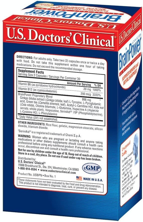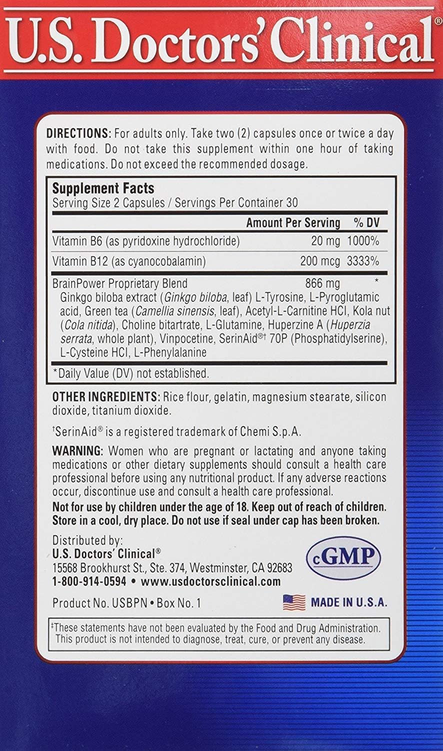 Buy U.S. Doctors' Clinical BrainPower Advanced Memory Supplement with 15 Brain-Boosting Ingredients for Supporting Healthy Memory, Brain Function, & Healthy Brain Circulation [1 Month Supply - 60Count] on Amazon.com FREE SHIPPING on qualified orders