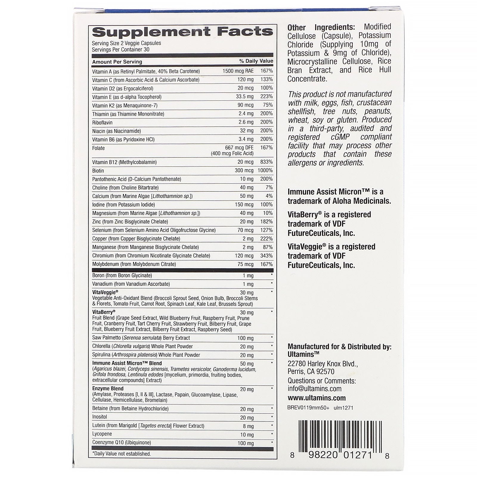 Ultamins, Men'S 50+ Multivitamin With Coq10, Mushrooms, Enzymes, Veggies & Berries