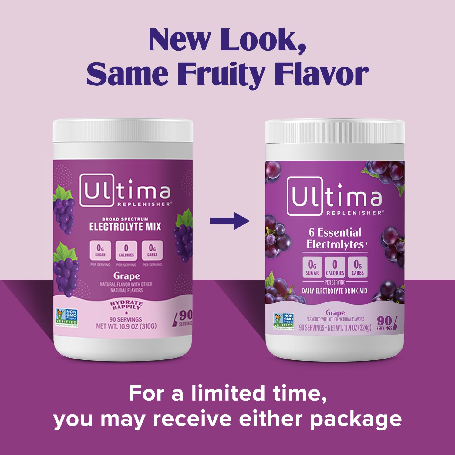 Ultima Replenisher Daily Electrolyte Drink Mix – Grape, 90 Servings – Hydration Powder With 6 Key Electrolytes & Trace Minerals – Keto Friendly, Vegan, Non- Gmo & Sugar-Free Electrolyte Powder