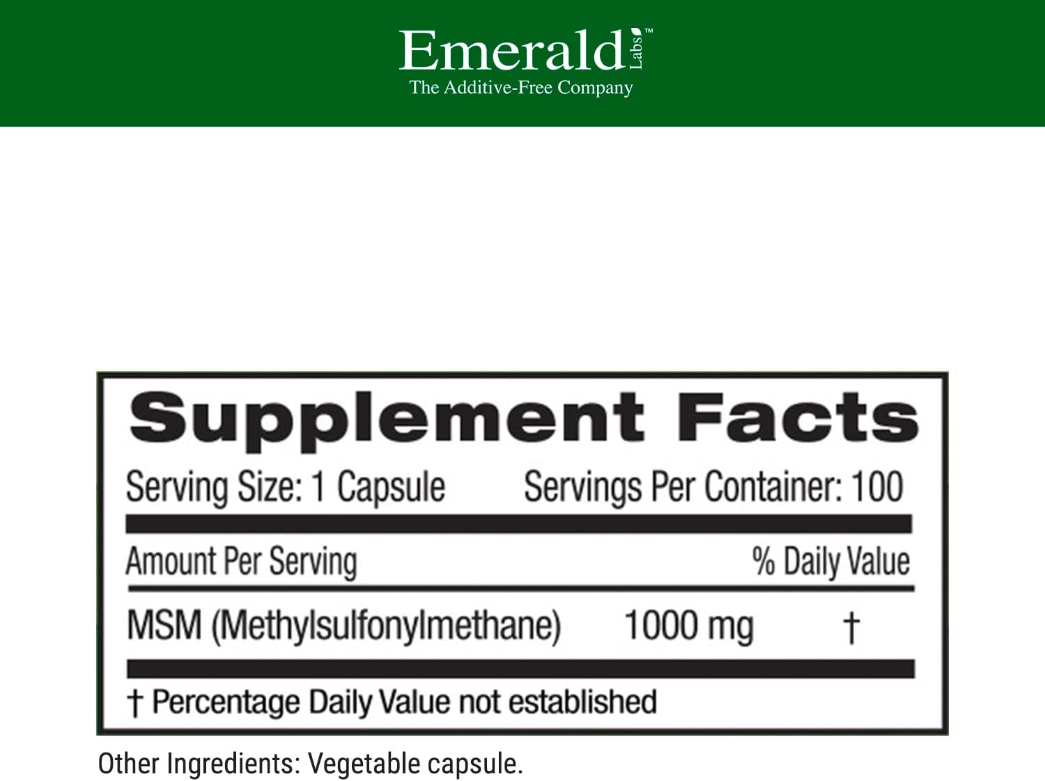 DESCRIPTION : Ultra Botanicals Emerald Labs MSM 1000 mg - Dietary Supplement with Plant-Sourced Methylsulfonylmethane for Joint Support and Healthy Immune Function - 100 Vegetable Capsules