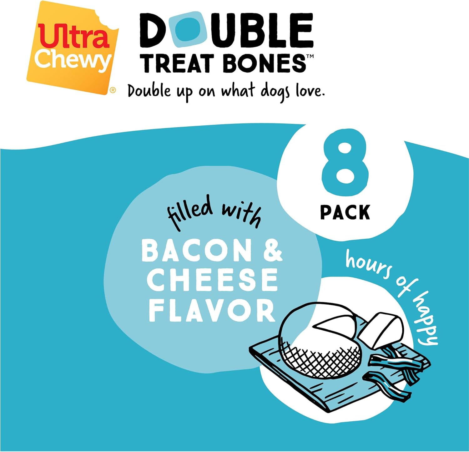 Ultra Chewy Double Treat Bones: Long-Lasting Dog Treats Made In Usa For Large And Small Breeds, Highly Digestible, Ideal For Aggressive Chewers (Bacon & Cheese, 2 Value Packs)