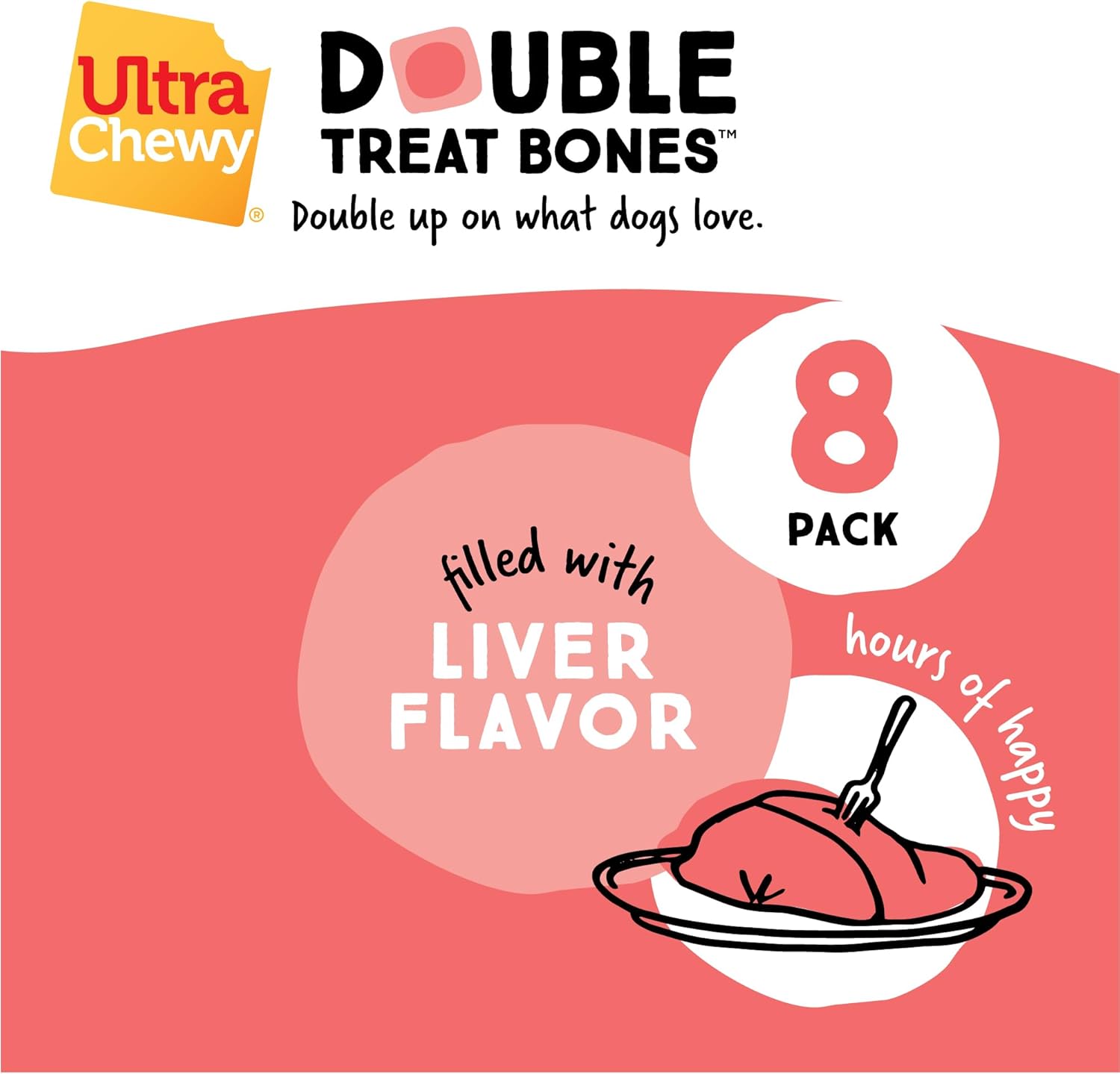 Ultra Chewy Liver, Double Treat Bones: Long-Lasting Dog Treats Made In Usa For Large And Small Breeds, Highly Digestible, Ideal For Aggressive Chewers (24 Individually Packed Bones)