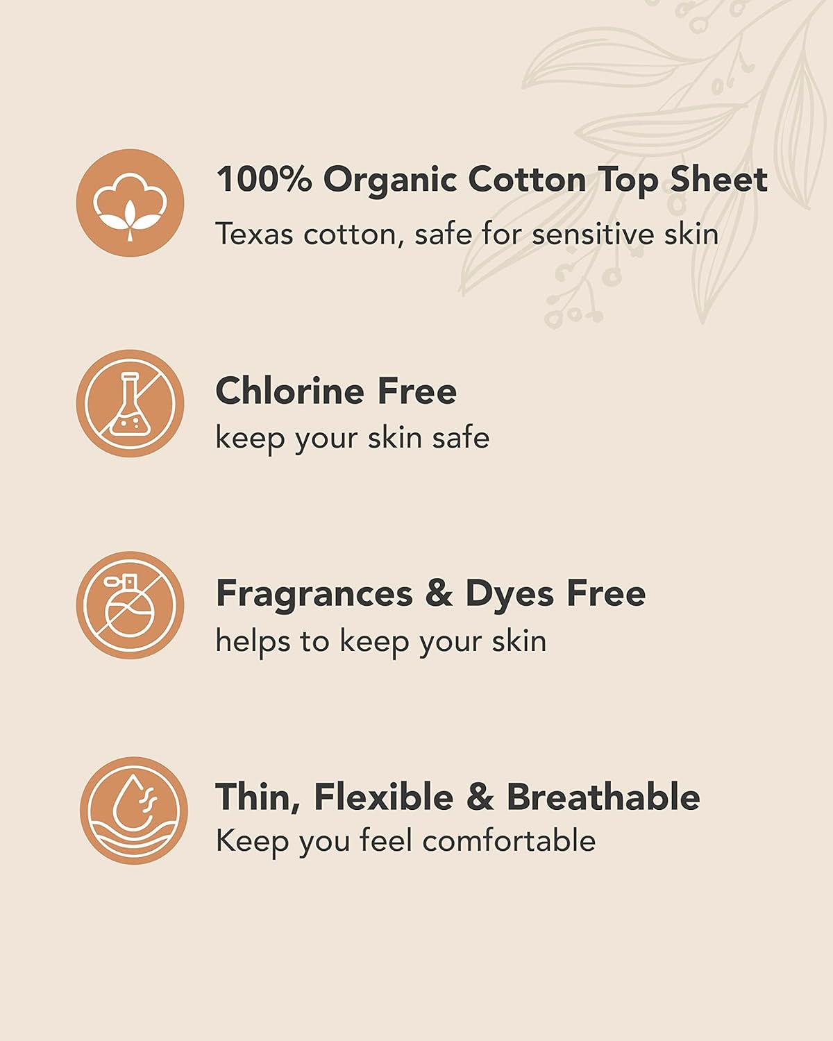 MAX COMFORT & ABSORPTION - Medium ultra-thin menstrual pad with wings made with US FDA registered ingredient of 100% organic Texas cotton (top cover) ensures maximum absorbency and leak-free because of excellent adhesion and a anti-leak embossment design, making sure that it doesn't budge and giving you a peace of mind. Our product is so soft to touch, since it's top quality cotton material it can help reduce skin irritation and discomfort, making those does just a little better10100% TEXAS GROWN ORGANIC COTTON - Our pads (cover) are made from 100% Texas organic cotton, an ingredient registered with the US FDA. Our organic cotton is grown in a field that has not used pesticides or chemical fertilizers for more than 3 years, and after harvest, has been kept clean by storing it in a immaculate, state-of-the-art facility with a low level of foreign substances or contamination to ensure our clean cotton stays clean10ANTI-LEAKAGE SYSTEM - Our high-performance middle SAP sheet boasts fast absorption and prevents menstrual blood from leaking or clumping with the material. The breathable texture cover with excellent air flow relieves stuffiness and discomfort, while the anti-leak embossment design blocks the front, back, and sides to prevent leakage. So not only are our pads super soft like hotel linen, it also has integrity and function, providing you comfort and a peace of mind when you need it most10SAFETY & QUALITY - Our pads are certified according to the organic content standard certification standard from the ECOCERT Greenlife certification body. Degreased using hydrogen-peroxide-based bleaching method, which is a method of manufacturing cotton in the medical field. Therefore, there is no risk of dioxin affecting the human body, and metal substances are not detected. In addition, non-woven fabrics are manufactured with water pressure instead of chemical adhesives10BRINGING YOU COMFORT - OCBON has been dedicated to researching and developing vegan and organic sanitary products to help provide relief for women of all ages and sizes during the most uncomfortable times of the month. Many years of expertise has made OCBON the award-winning and most trusted sanitary brand it is today. When you need comfort most, OCBON