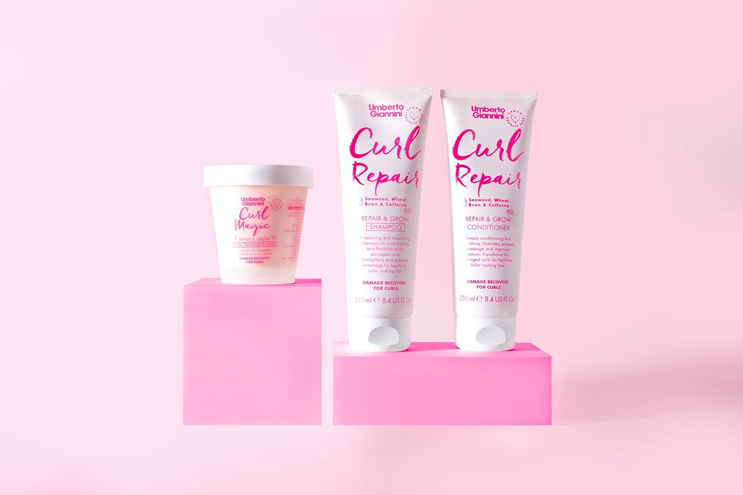 Umberto Giannini Curl Repair Shampoo, Conditioner & Mask Set, Vegan & Cruelty Free Growth Formula With Seaweed, Wheat Bran & Caffeine Curl Repair Kit