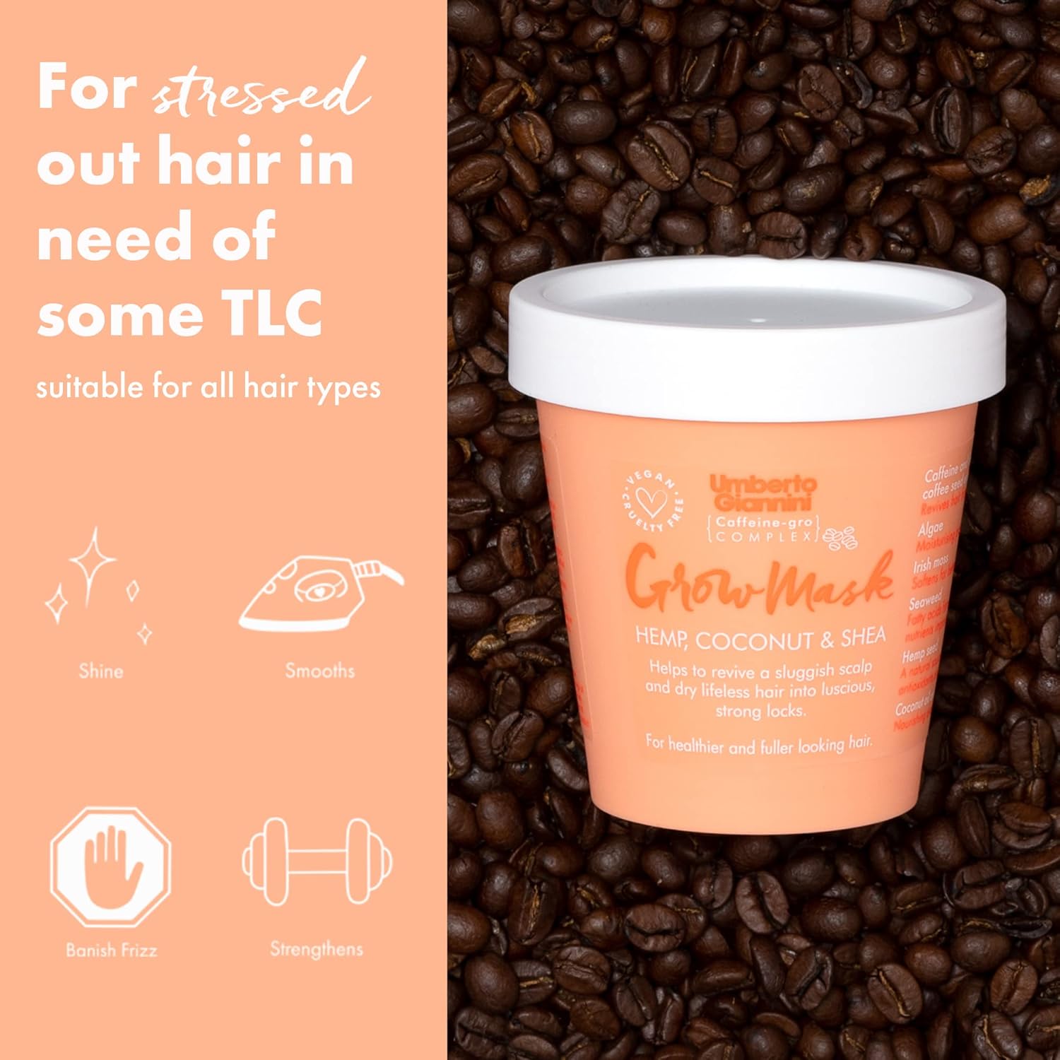 Umberto Giannini Grow Long Grow Mask For Dry, Damaged, Chemically Treated Hair. Creates Thicker, Fuller Hair - Hair Loss Treatment With Caffeine For Thin Hair - Vegan & Cruelty Free