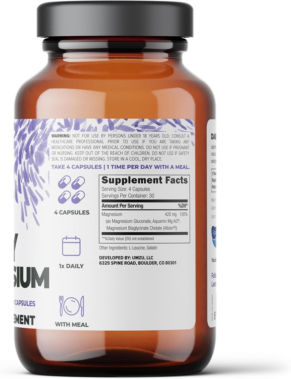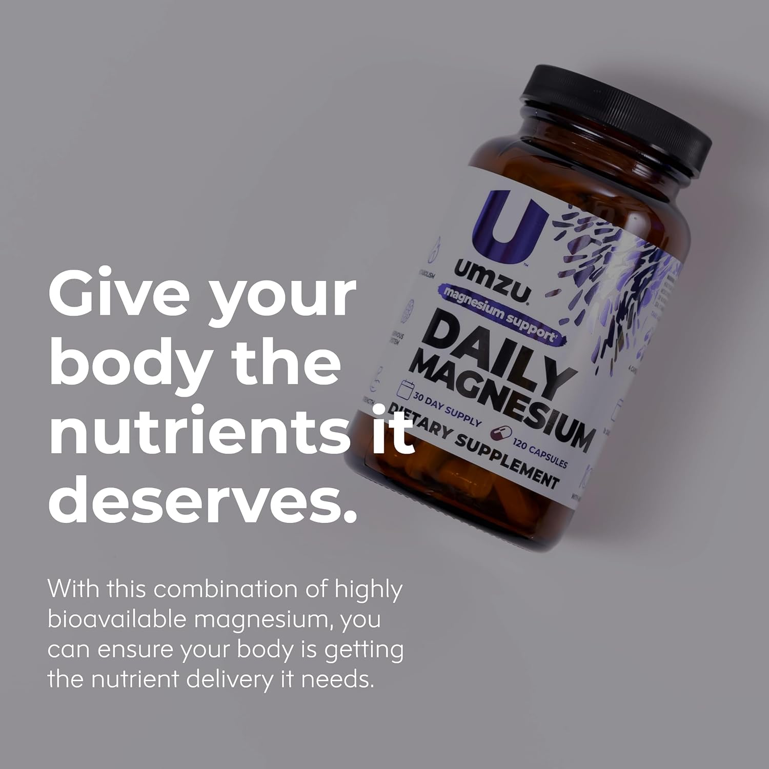 Umzu Daily Magnesium | Potent Bioavailable Magnesium Complex For Healthy Metabolism, Sustained Energy, Exercise Performance & Sleep Support (30 Day Supply | 120 Capsules)