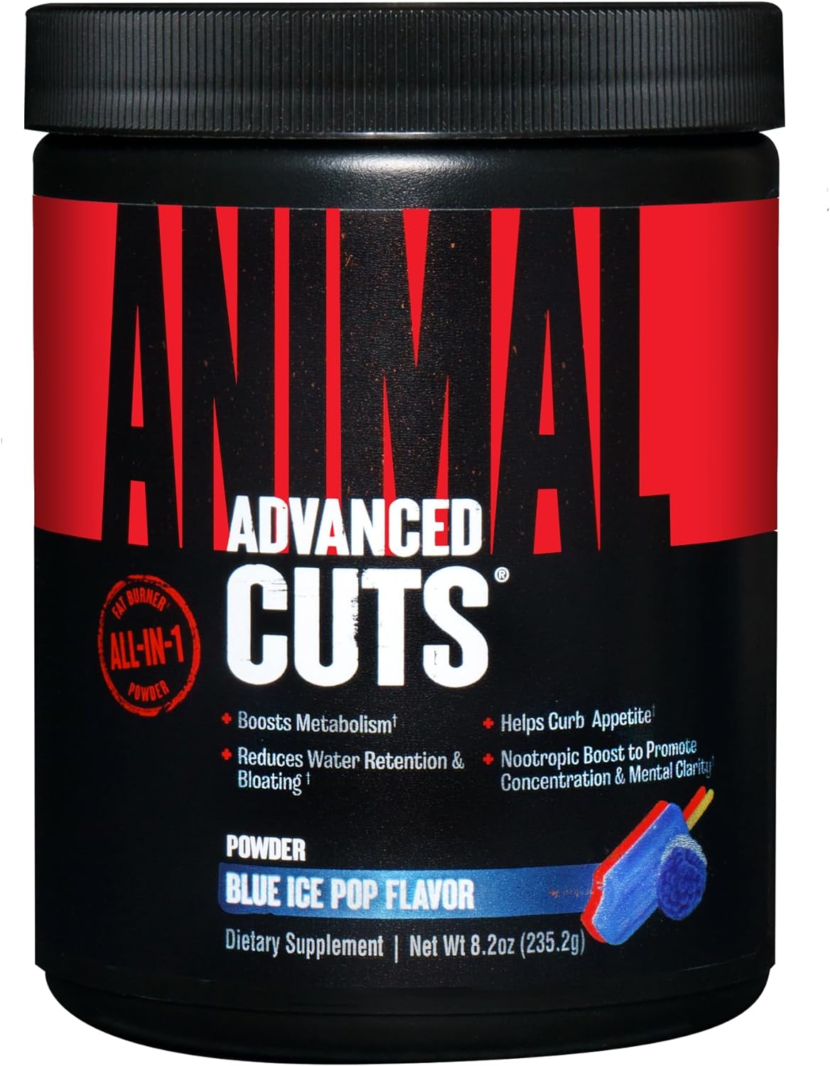 DESCRIPTION : Universal Nutrition Animal Cuts Powder - Metabolic Enhancer, Nootropics, Carnitine, Tyrosine, Diuretic, Great Tasting, Blue Ice Pop, 42 Count