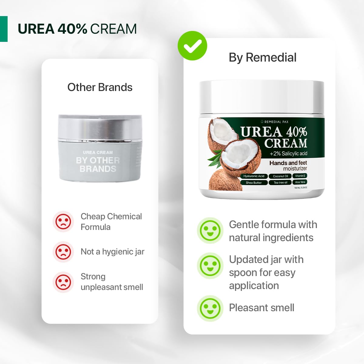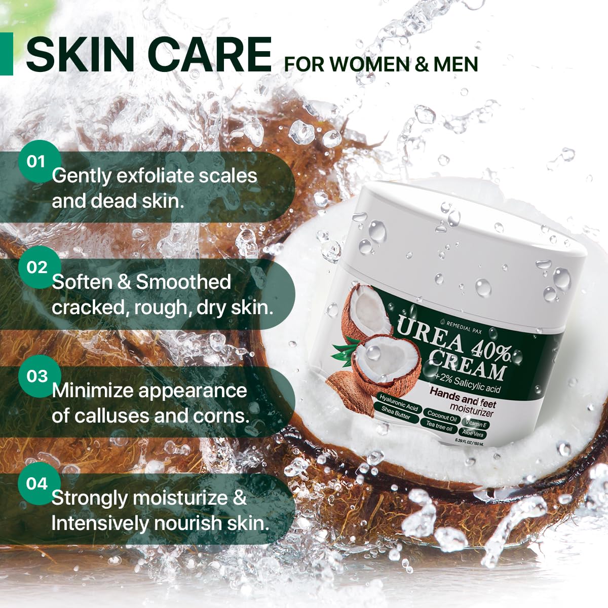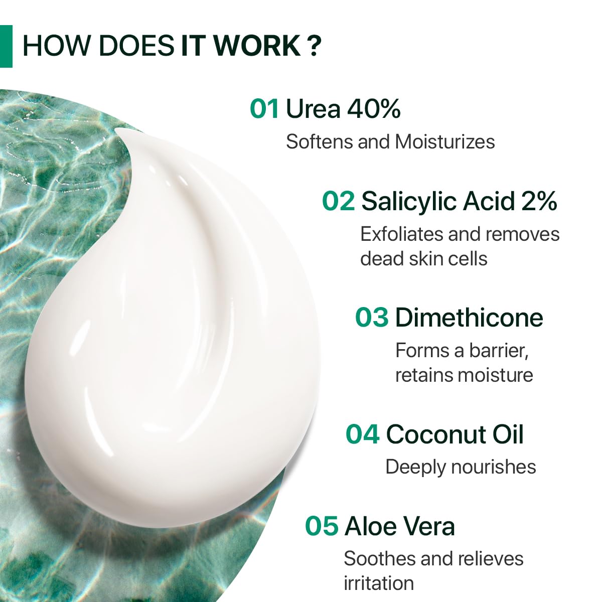 40% Urea Cream is an organic moisturizer for feet, skin, hands, callos for men and women; perfect balance of Urea (40%), Salicylic Acid, Aloe Vera, Tea Tree smooths dry and rough skinDry Cracked Heel Treatment: bare 40 moisturizing urea gel with hydrating effect is the best solution to make body and face skin healthy with gentle night peelingUrea Lotion Prevents Dryness: helps you in softening and moisturizing dry and cracked skin. It is safe, reliable and helps to keep advanced feet care, relief for skinUniversal Day & Night Cream is a miracle solution to problems with the dryness of the whole body: cracked heels feet knees elbows; formula of the foot repair cream is a safe rescueQuality Control: foot care products are manufactured under the highest hygienic standards! Intensive formula heals skin safely and keeps your skin under control of high-quality ingredientsUrea Cream 40 Percent for Feet, 40% Urea Foot Cream for Dry Cracked Heels Knees Elbows Callus Hands Repair Treatment with 2% Salicylic Acid, Foot Moisturizer, Dead Skin Remover, Softener for Feet Care