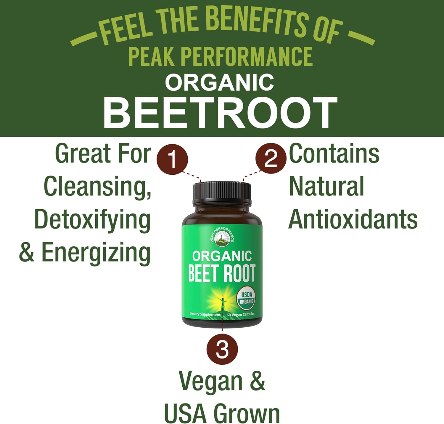 USDA Organic Beet Root Vegan Capsules. Beets Juice Powder Super Food Pills 1200 mg. Nitric Oxide Energy Boosting Beetroot Extract Capsules. Polyphenol Support Supplement for Women and Men