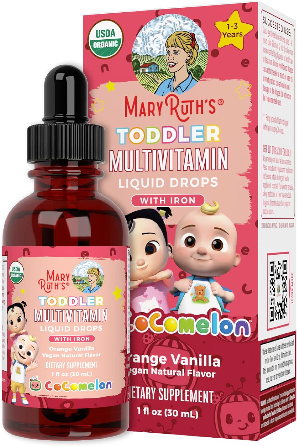 BULLET POINTS : 1 > Bundle & Save: Our best selling toddler products are now a bundle! Cocomelon Multivitamin & Multimineral with Iron for Toddlers by MaryRuth's | USDA Organic | Sugar Free | Multivitamin Liquid Drops for Kids Ages 1-3 | Immune Support | Vegan | Non-GMO | 1 Fl Oz | Cocomelon Toddler Vitamin C Liquid Drops by MaryRuth's | Sugar Free | USDA Organic | Kids Vitamin C for Ages 1-3 | Immune Support for Kids | Vegan | Non-GMO | Gluten Free | 0.5 Fl Oz
