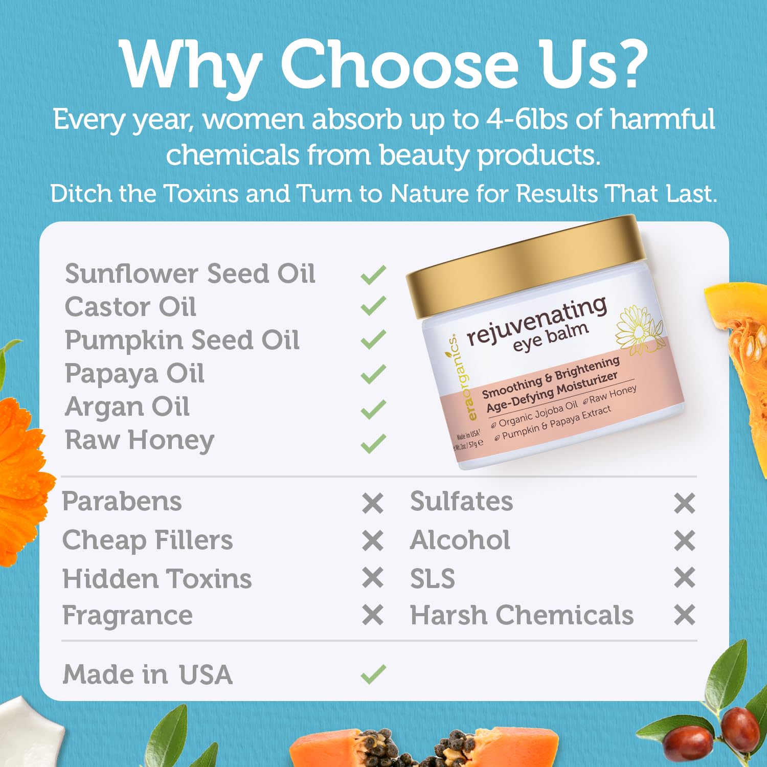 The Best Under Eye Cream Needs The Best Ingredients. Super Robust Buttery Formula Includes Skin Super Foods Jojoba Oil, Calendula Oil, Sunflower Oil, Raw Honey, Argan Oil, Coconut Oil, Rosemary Extract And More