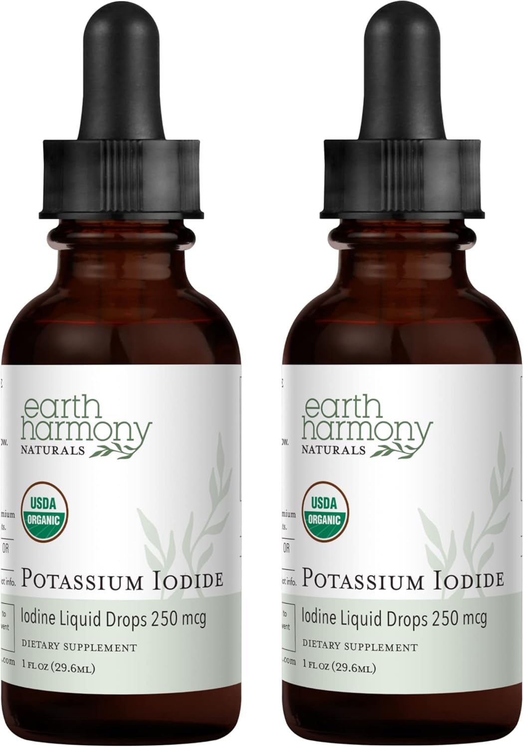 Usda Organic Potassium Iodide 250 Mcg Liquid Supplement 2-Pack (1-Year Supply) - Supports The Thyroid Gland And Helps Exposure & Low Levels Of Iodine - More Bioavailable Than Tablets, Pills - 1 Fl Oz