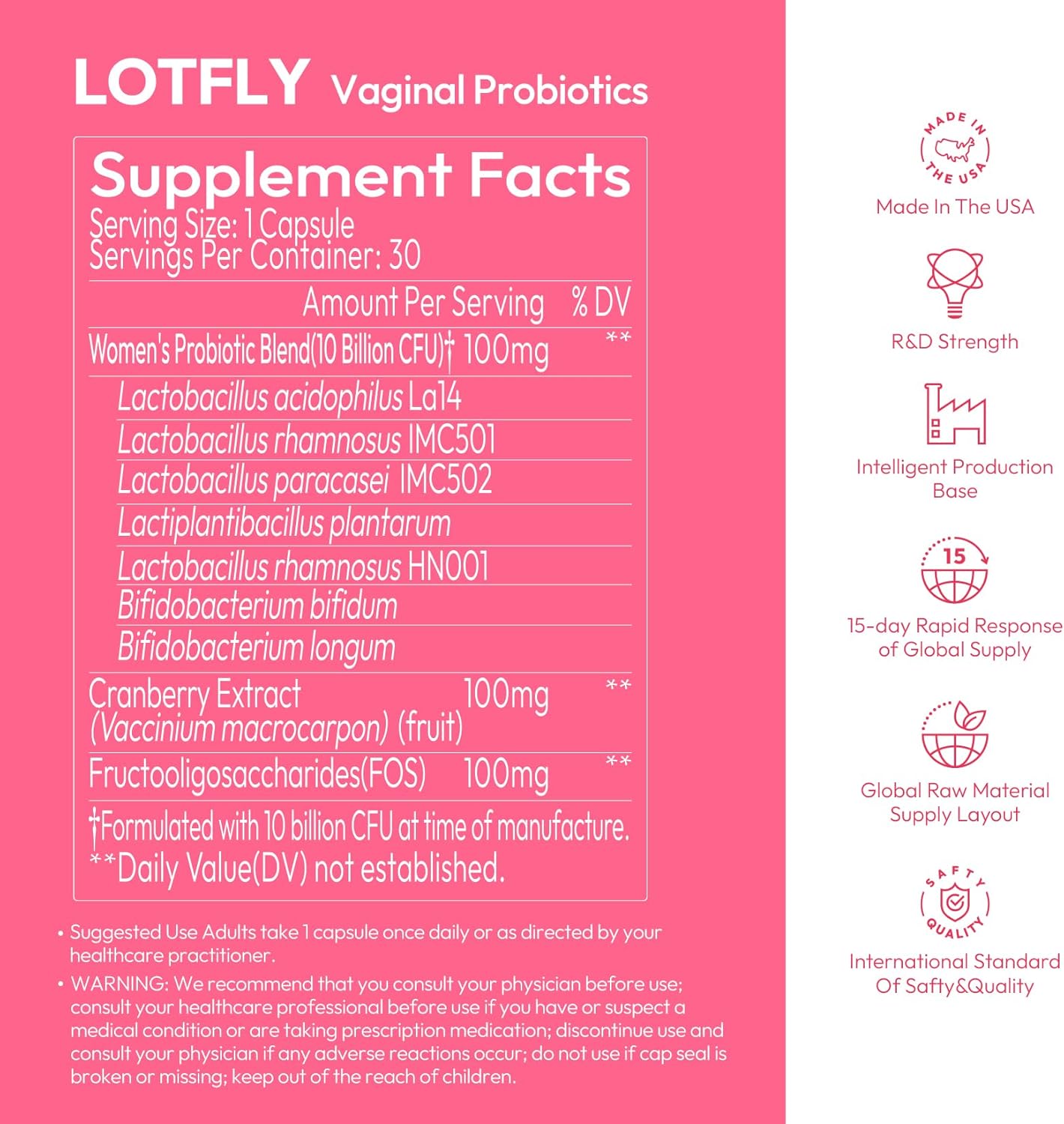 Promotes Vaginal Health & pH Balance: LOTFLY Vaginal Probiotics are formulated with clinically studied ingredients to support healthy vaginal odor, maintain balanced vaginal pH, promote optimal vaginal flora, and overall vaginal care